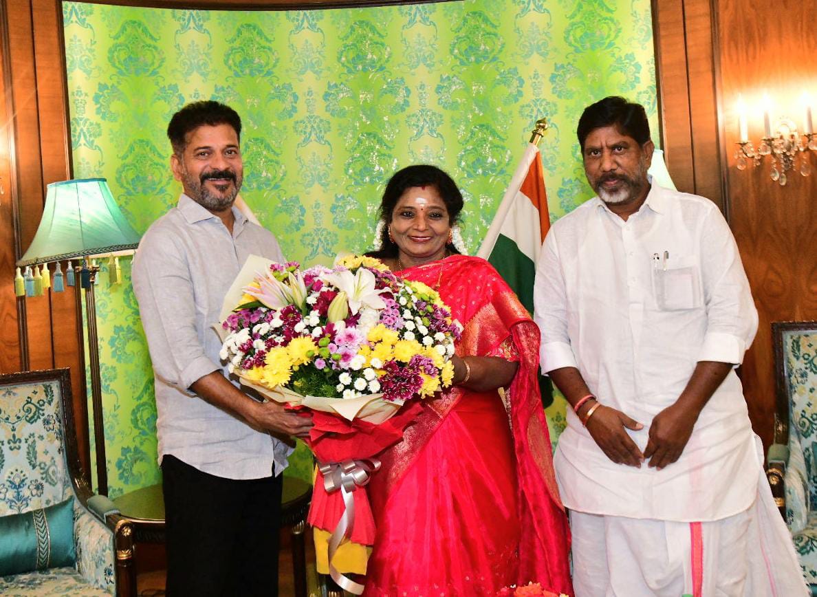 Chief Minister Sri A. Revanth Reddy paid a courtesy call on the Hon’ble Governor Smt. Tamilisai soundararajan at Raj Bhavan on Thursday.
