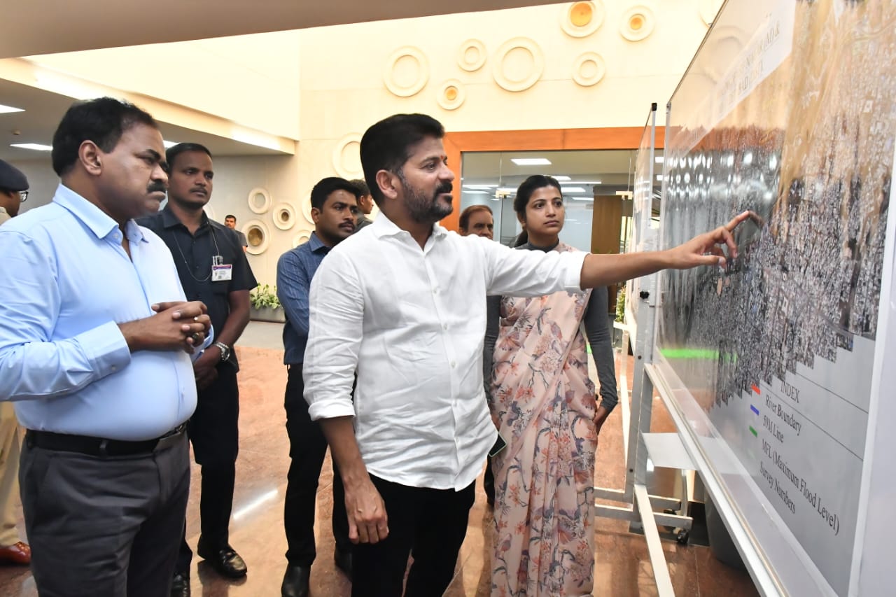 Hon’ble Chief Minister Sri A. Revanth Reddy holds a review on Musi Riverfront Development Project with officials at Nanakramguda HMDA office.