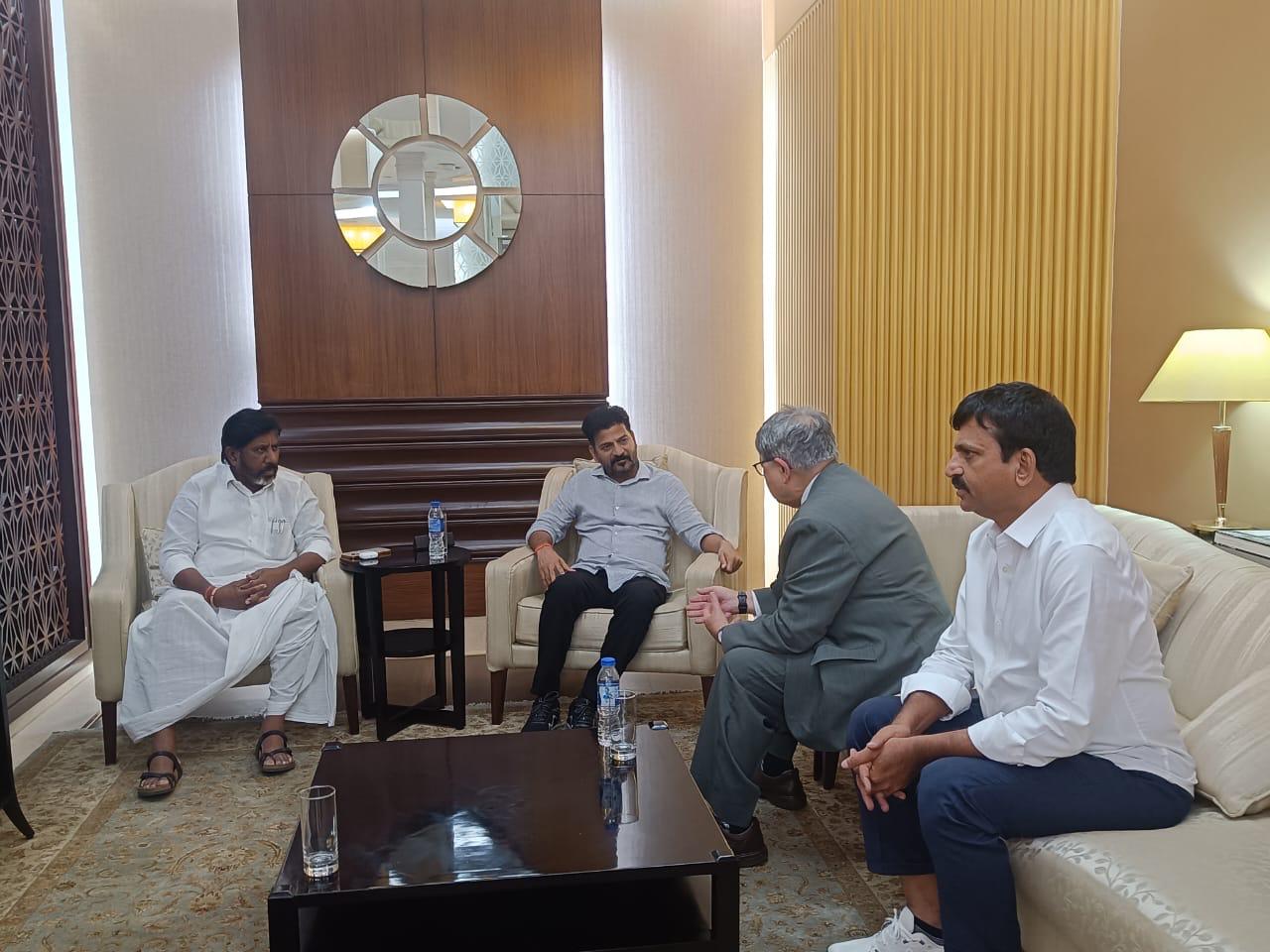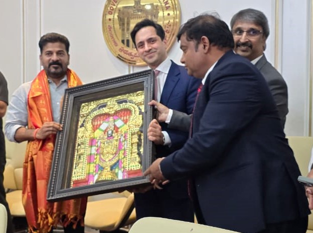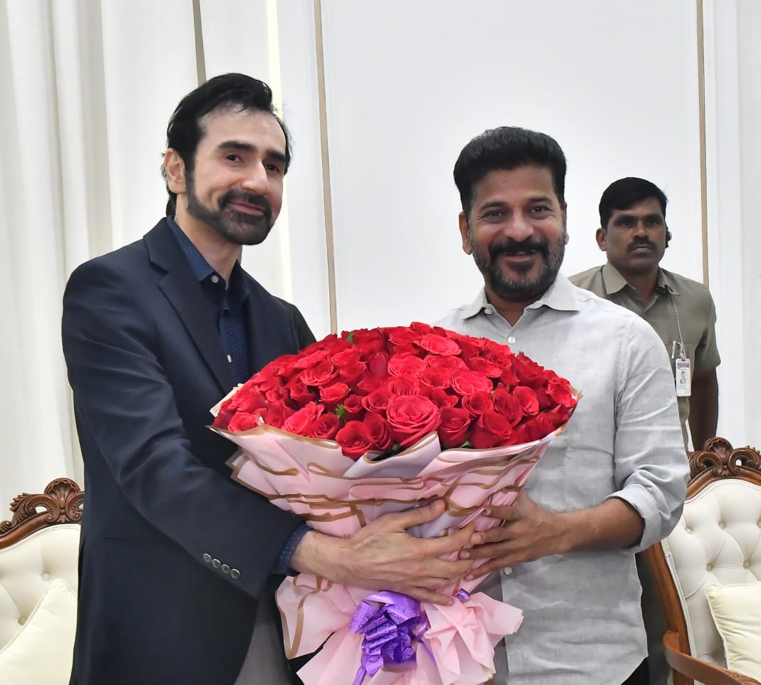 Representatives of Fishin India Company Joy Folk, Manish Kumar, Altaf Ali Khan, and Vandana Kumar paid a courtesy call on Chief Minister Sri Revanth Reddy at the Secretariat. డా. బి.
