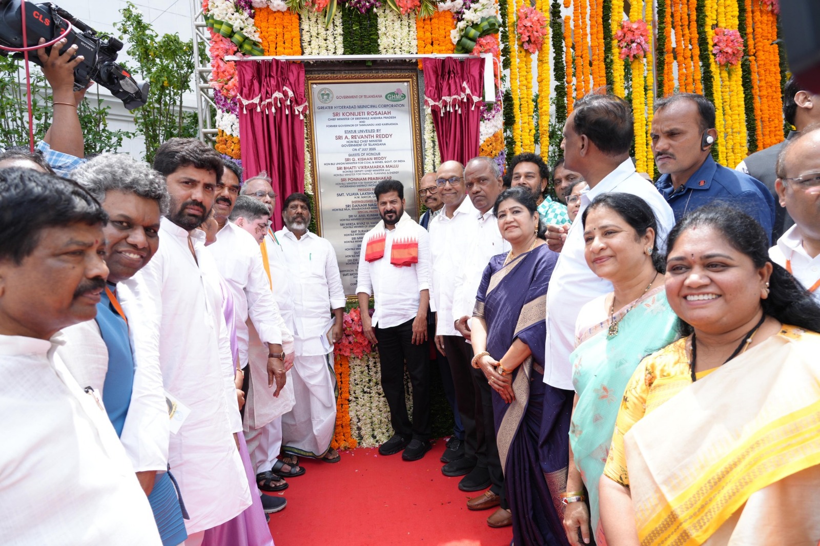 CM Sri A. Revanth Reddy participated in unveiling the statue of Sri K. Rosaiah at Lakdikapul X Roads