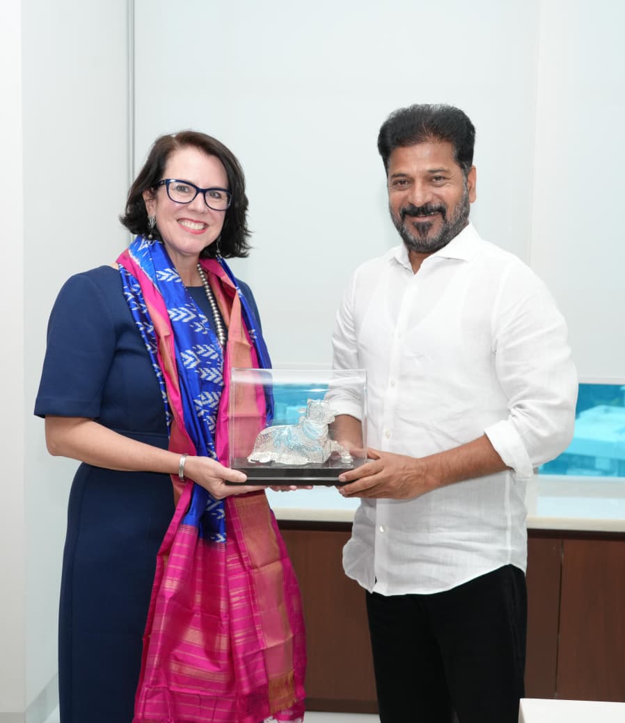 ముఖ్యమంత్రి శ్రీ రేవంత్ రెడ్డి గారిని హైదరాబాద్‌లోని అమెరికా కాన్సుల్ జనరల్ శ్రీమతి లారా విలియమ్స్ గారు మర్యాదపూర్వకంగా కలిశారు.
