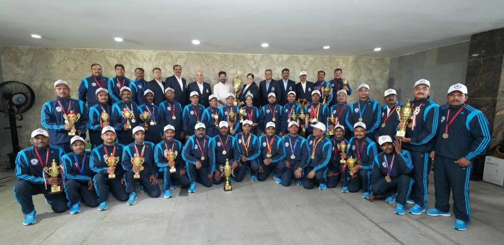 తెలంగాణ వేదికగా జరిగిన జైళ్ల శాఖ 7వ జాతీయ స్థాయి డ్యూటీ మీట్ 2025 లో పతకాలు సాధించిన క్రీడాకారులను ముఖ్యమంత్రి శ్రీ రేవంత్ రెడ్డి గారు అభినందించారు. ఈ నెల 9 నుంచి 11 వ తేదీ వరకు 7 వ ‘అఖిల భారత ప్రిజన్ డ్యూటీ మీట్- 2025’ హైదరాబాద్ వేదికగా జరిగింది.