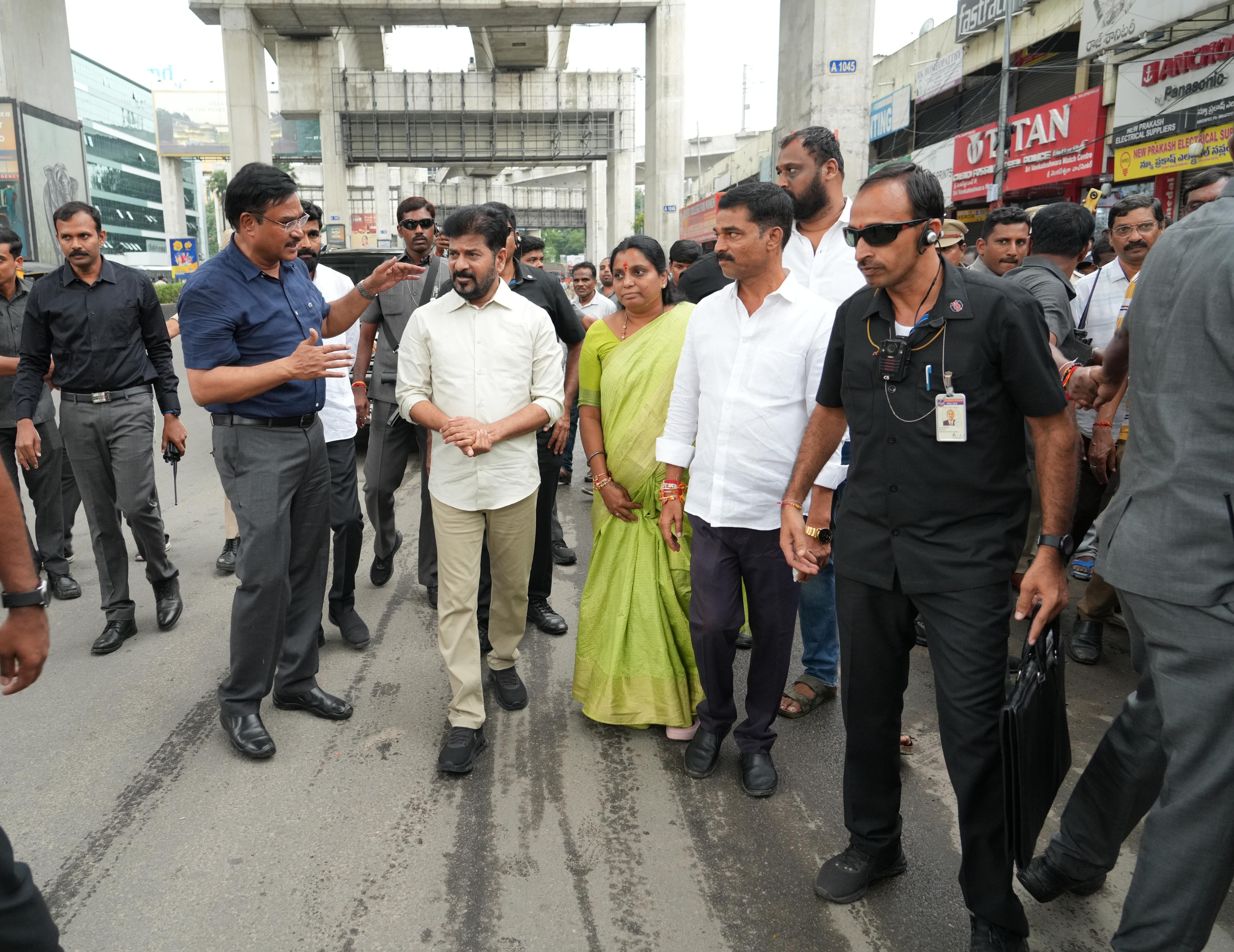 CM Revanth Reddy conducts surprise inspection of flood affected areas in Hyderabad.