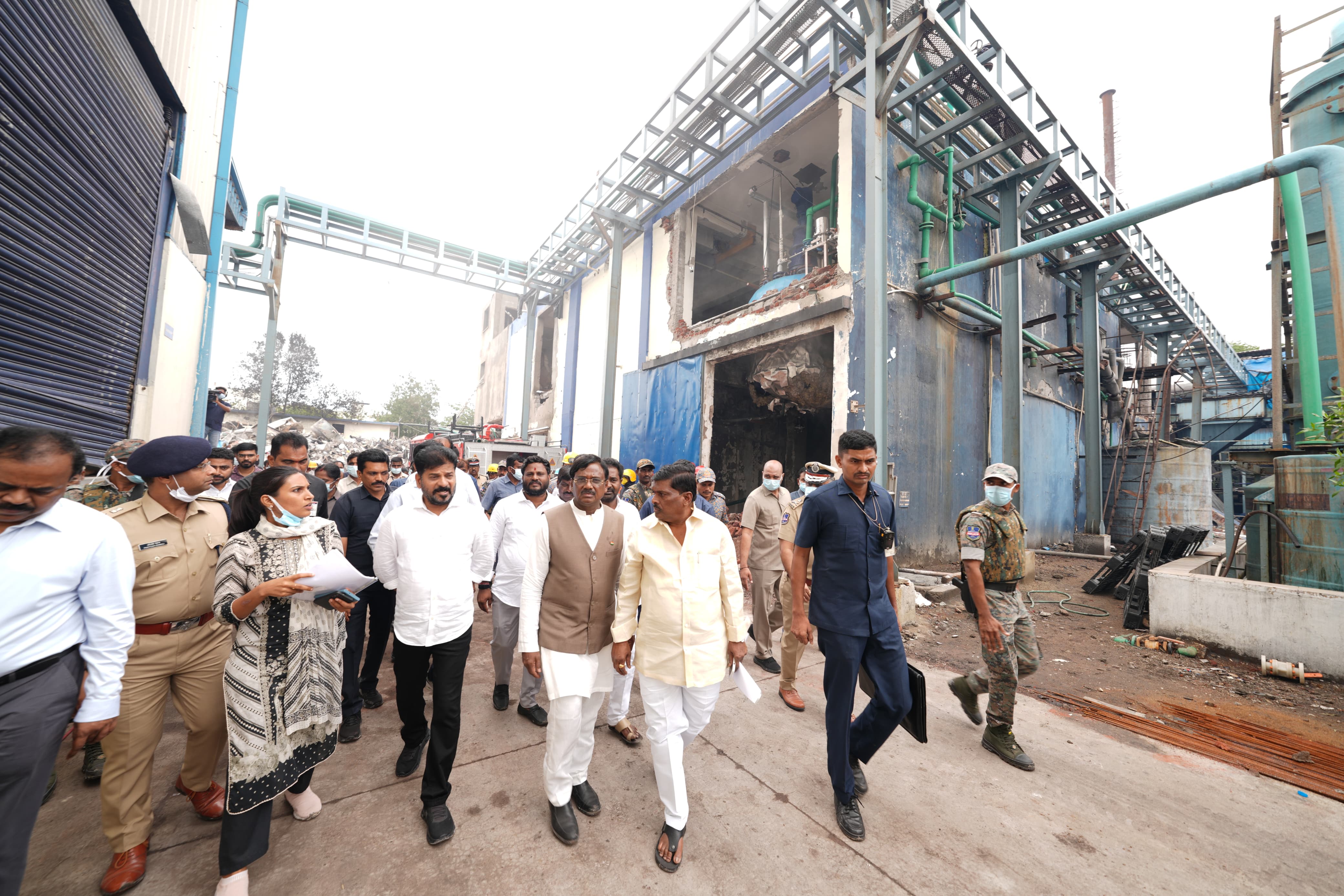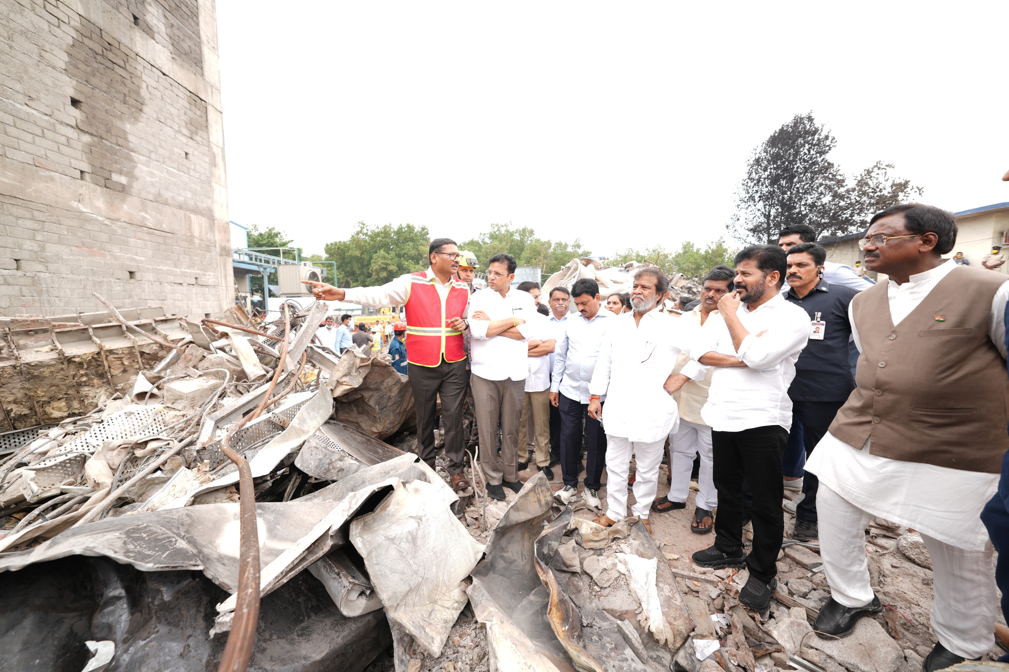 పాశమైలారంలోని దుర్ఘటన జరిగిన రసాయన పరిశ్రమను ముఖ్యమంత్రి గారు మంత్రులతో కలిసి పరిశీలించారు. పరిశ్రమలోని రియాక్టర్ భారీ విస్పోటనం కారణంగా ఏర్పడిన పరిస్థితులు, శిథిలాలు, పరిశ్రమ సముదాయాన్ని పరిశీలించారు. ప్రమాదానికి దారితీసిన పరిస్థితులను అధికారులను అడిగి తెలుసుకున్నారు.