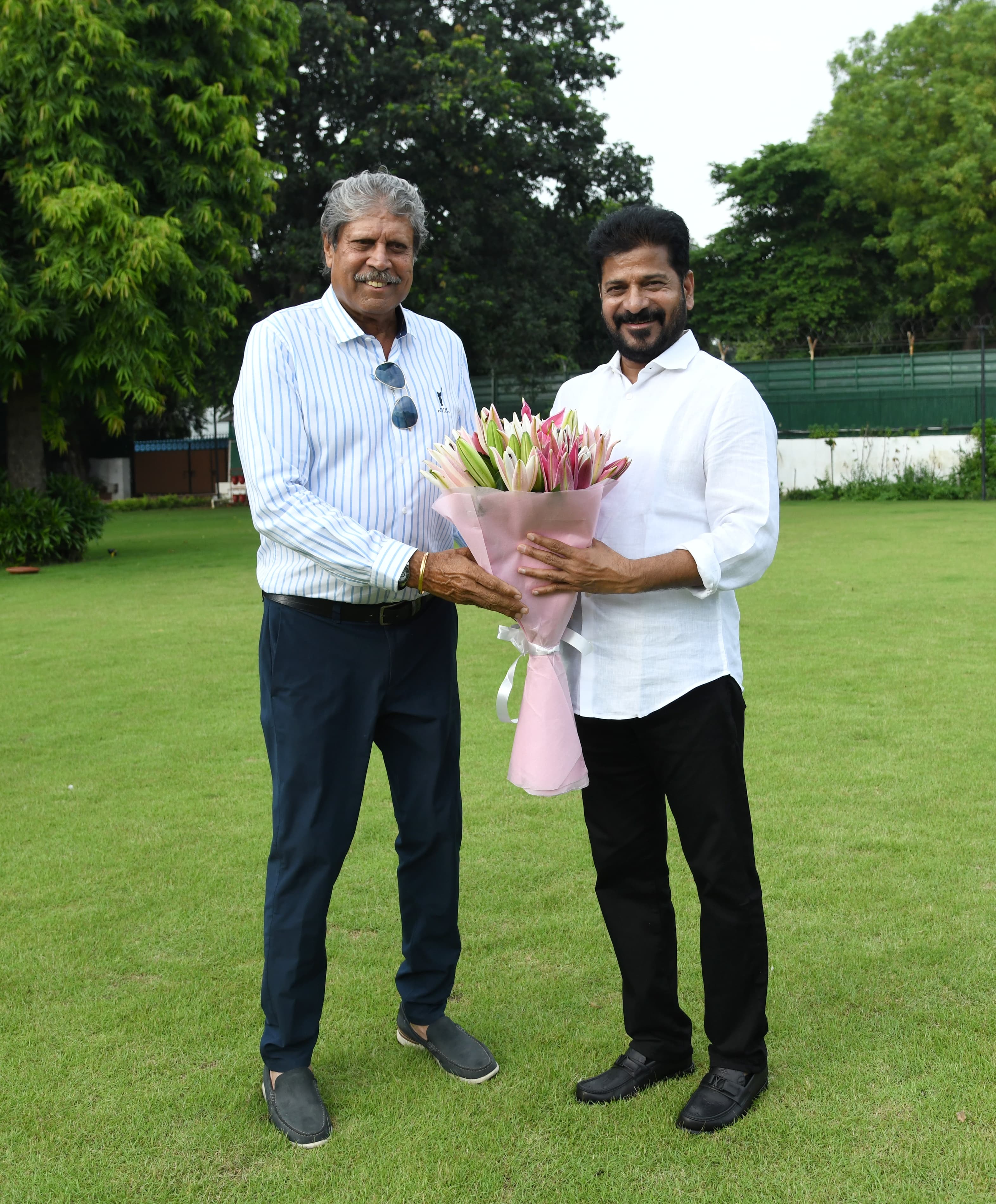 తెలంగాణలో ముఖ్యమంత్రి శ్రీ రేవంత్ రెడ్డి గారి నేతృత్వంలోని ప్రజా ప్రభుత్వం క్రీడా రంగం అభివృద్ధికి తీసుకుంటున్న చర్యలను భారత క్రికెట్ జట్టు మాజీ కెప్టెన్ కపిల్ దేవ్ గారు ప్రశంసించారు. ముఖ్యమంత్రి గారిని ఢిల్లీలోని అధికారిక నివాసంలో కపిల్ దేవ్ గారు కలిసి పలు అంశాలపై చర్చించారు.
