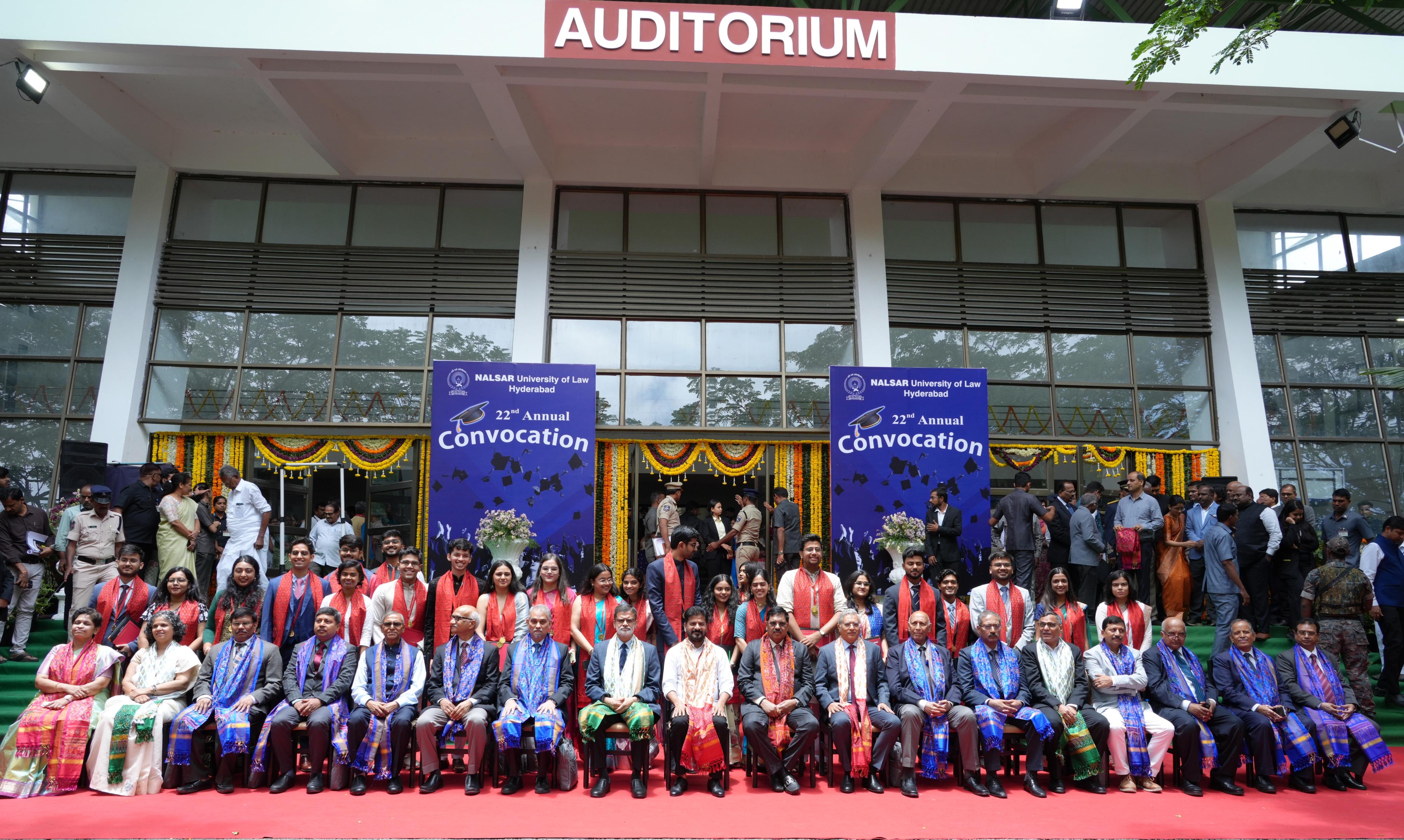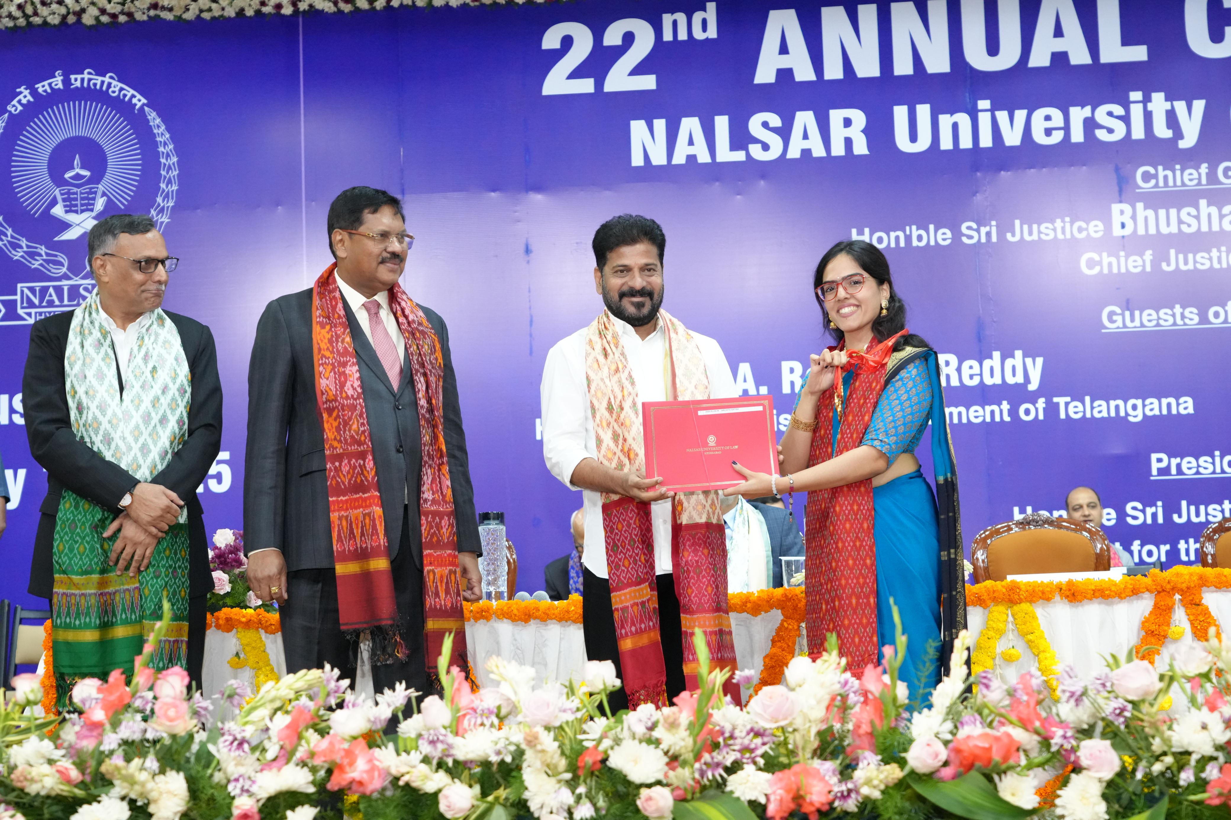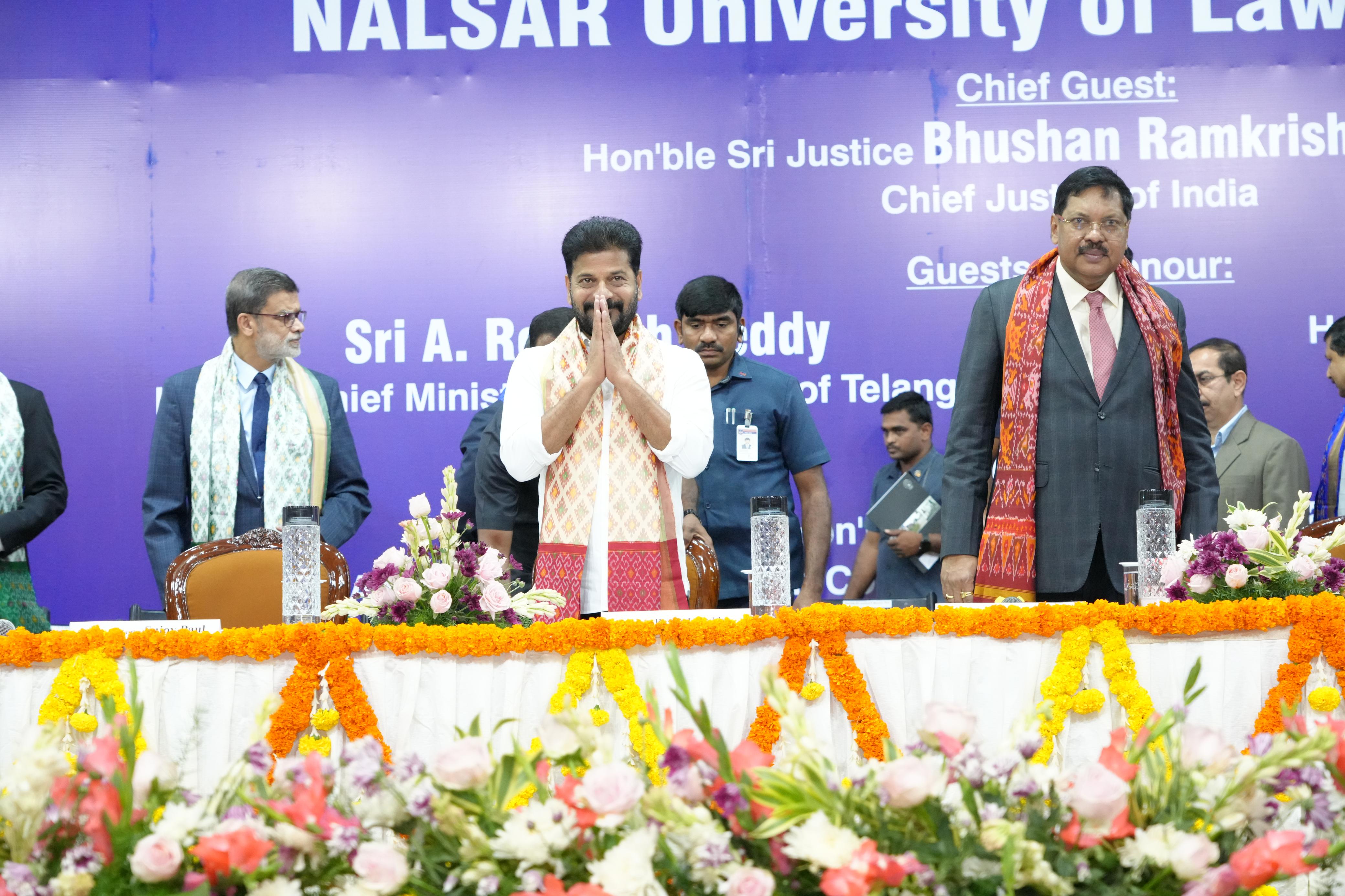 ప్రతిష్టాత్మక నల్సార్ యూనివర్సిటీ ఆఫ్ లా 22 వ స్నాతకోత్సవంలో సుప్రీంకోర్టు ప్రధాన న్యాయమూర్తి జస్టిస్ భూషణ్ రామకృష్ణ గవాయ్ గారు, సుప్రీంకోర్టు న్యాయమూర్తి జస్టిస్ పీఎస్ నరసింహ గారితో కలిసి ముఖ్యమంత్రి శ్రీ రేవంత్ రెడ్డి గారు పాల్గొన్నారు. నల్సార్ యూనివర్సిటీ ఆఫ్ లా చాన్సెలర్, హైకోర్టు ప్రధాన న్యాయమూర్తి (తాత్కాలిక) జస్టిస్ సుజయ్ పాల్ గారి అధ్యక్షతన ఈ కార్యక్రమం జరిగింది.