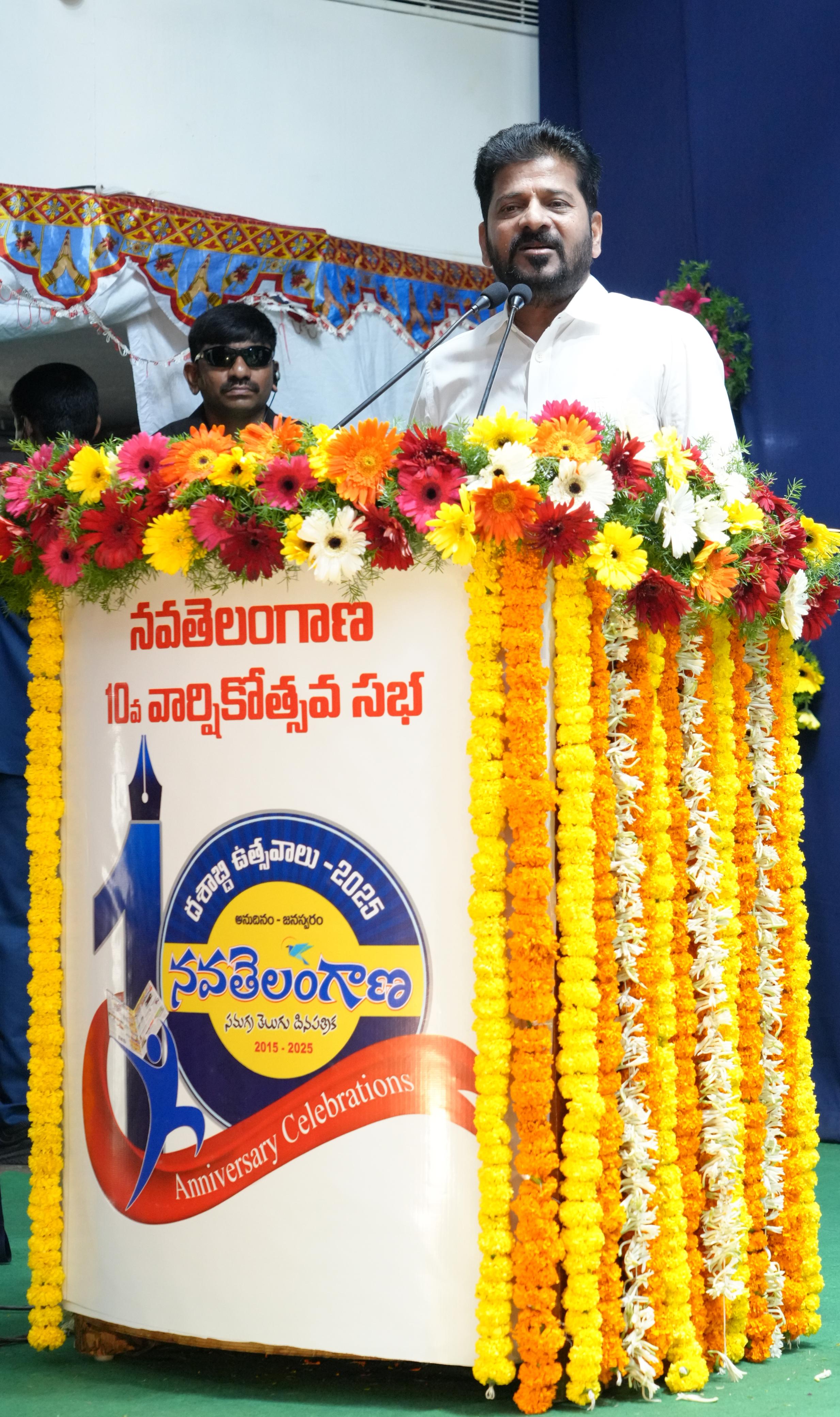 The Chief Minister was speaking at a gathering organized on the occasion of the 10th anniversary of Nava Telangana. He remarked that only a few newspapers consistently stand by the people and serve as a source of inspiration—and Nava Telangana is one among them.
