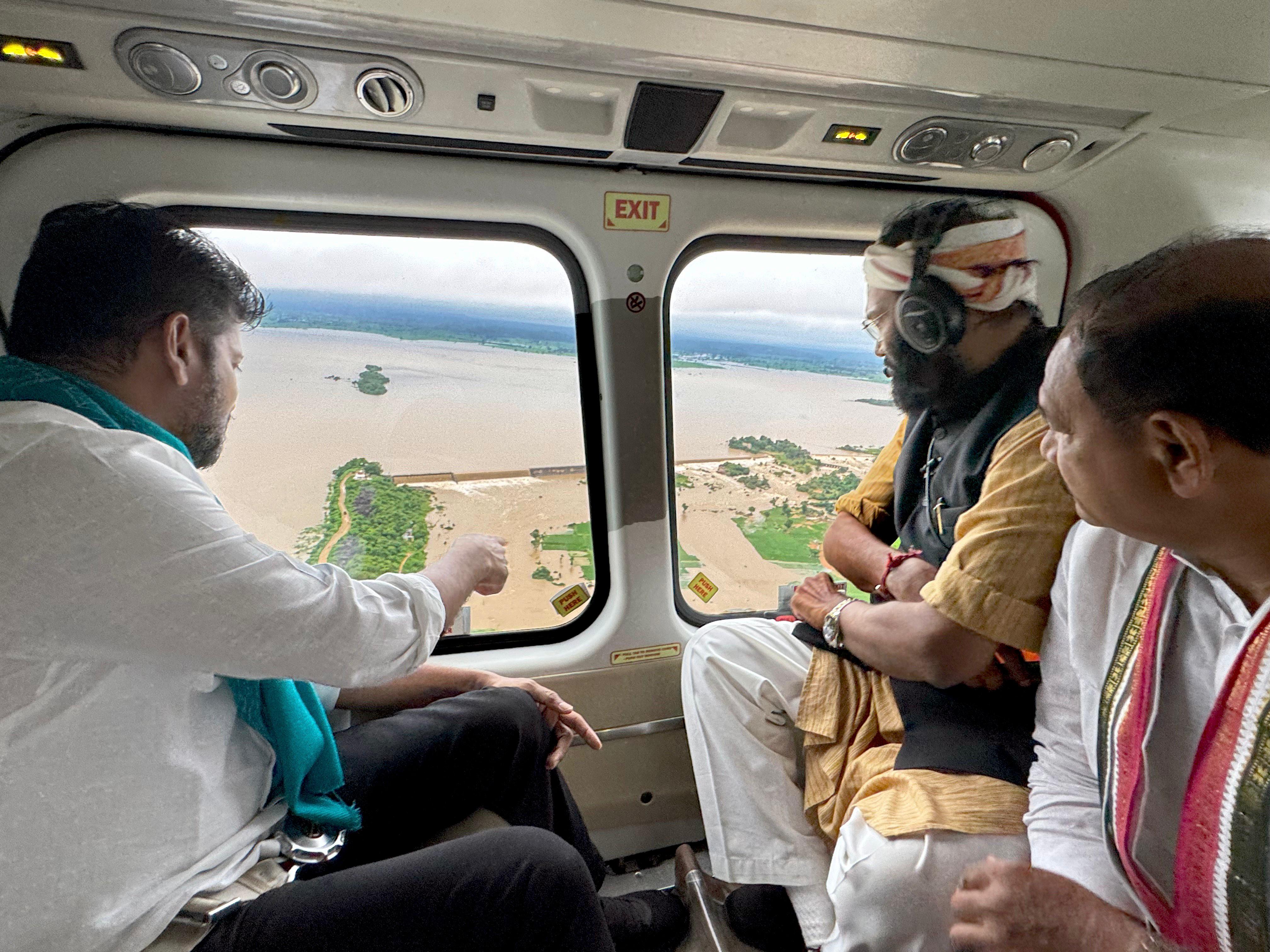 నీటి పారుదల శాఖ మంత్రి శ్రీ ఉత్తమ్ కుమార్ రెడ్డి గారు, ఎమ్మెల్సీ మహేష్ కుమార్ గౌడ్ గారితో కలిసి హెలికాప్టర్లో తొలుత ఎల్లంపల్లి ప్రాజెక్టుకు చేరుకుని అక్కడ వరద పరిస్థితిని పరిశీలించారు. అధికారుల నుంచి వివరాలను అడిగి తెలుసుకున్నారు.