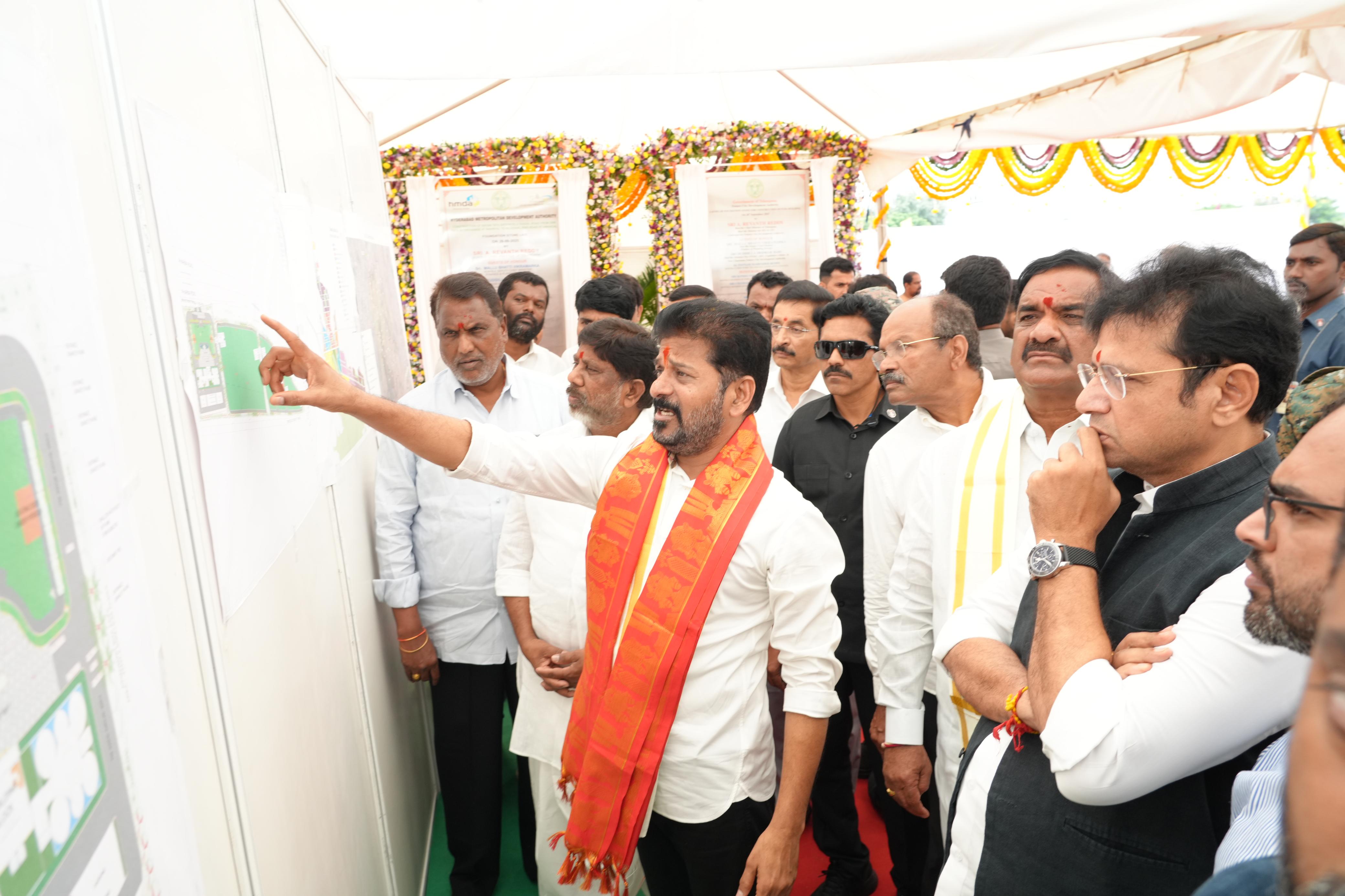On the occasion, the Chief Minister also performed the groundbreaking ceremony for the FCDA building and the proposed Greenfield Radial Road-1, connecting Kongarakalan to Amangal, and reviewed the model drawings of Future City.
