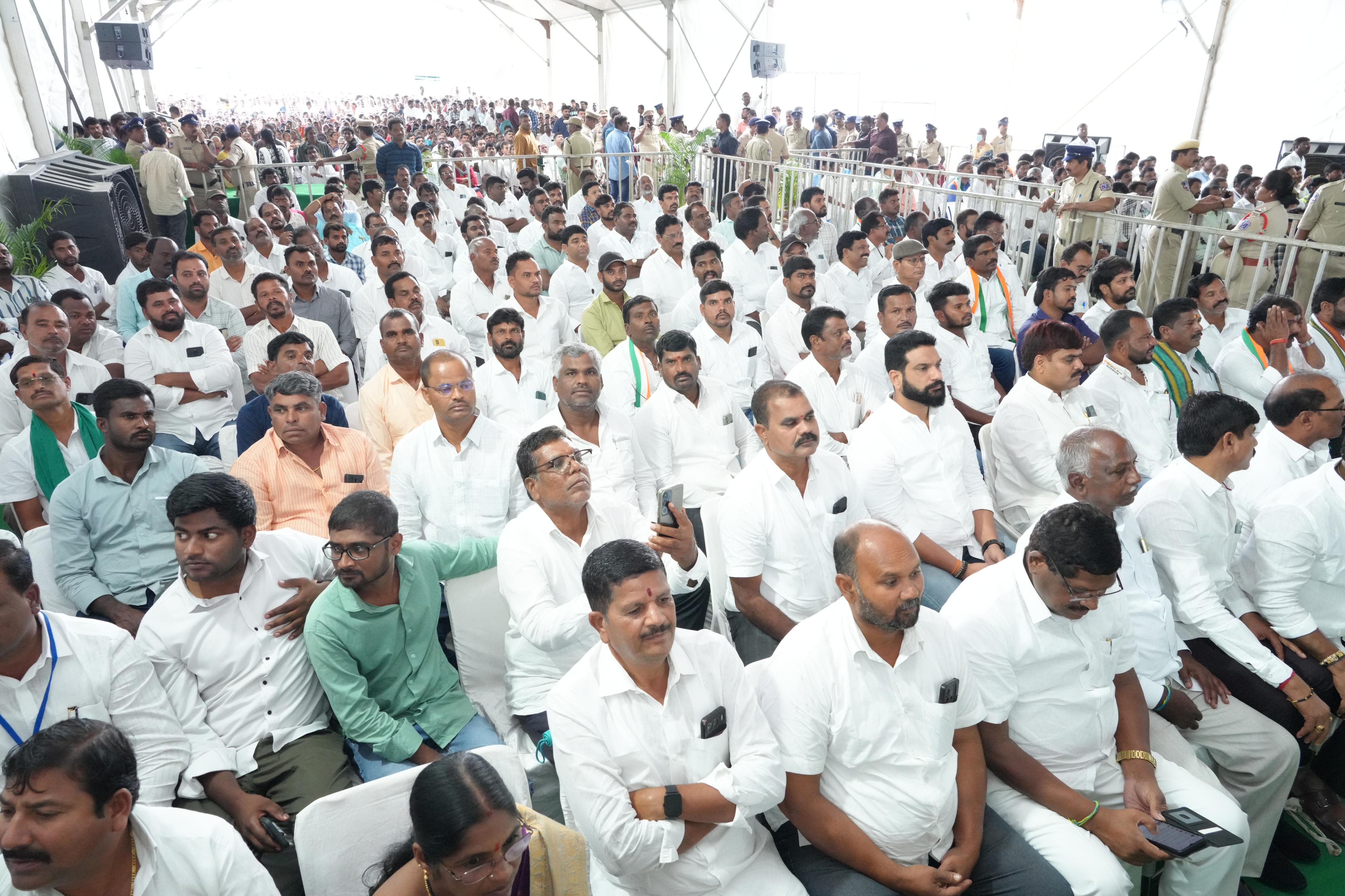 The program, held at Mirkhanpet, Kandukuru Mandal, Ranga Reddy District, was attended by Deputy Chief Minister Mallu Bhatti Vikramarka, Ministers Duddilla Sridhar Babu, Adluri Laxman Kumar, Advisor Vem Narender Reddy, and several public representatives.
