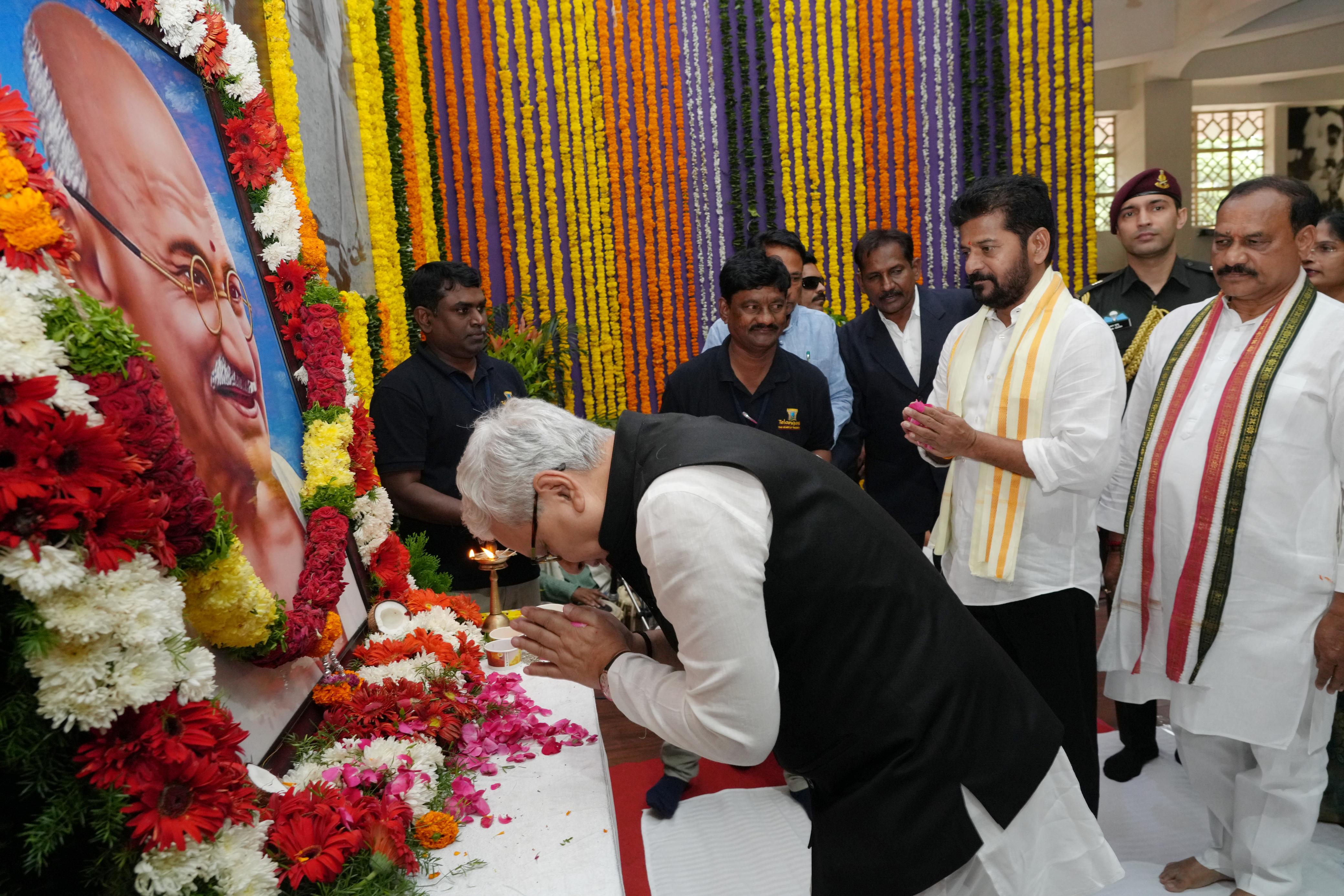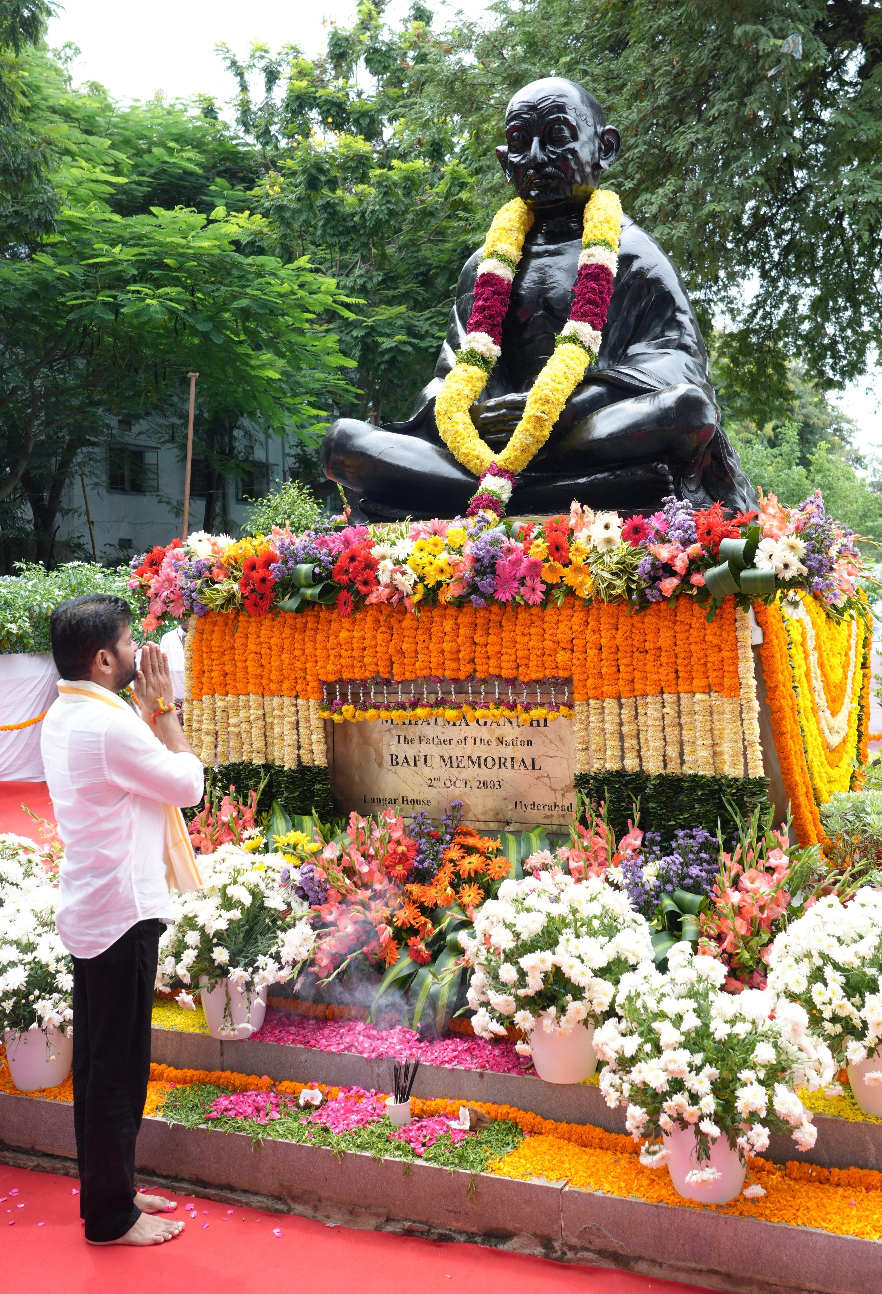జాతిపిత మహాత్మా గాంధీ జయంతి సందర్భంగా హైదరాబాద్ లంగర్‌హౌస్‌లోని బాపూఘాట్ వద్ద గవర్నర్ శ్రీ జిష్ణు దేవ్ వర్మ గారితో కలిసి ముఖ్యమంత్రి శ్రీ రేవంత్ రెడ్డి గారు మహాత్ముడికి పుష్పాంజలి ఘటించారు. అనంతరం సర్వమత ప్రార్థనల్లో పాల్గొన్నారు.