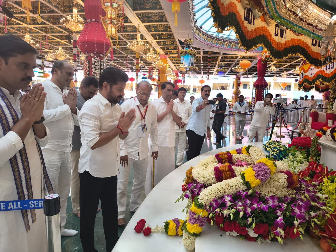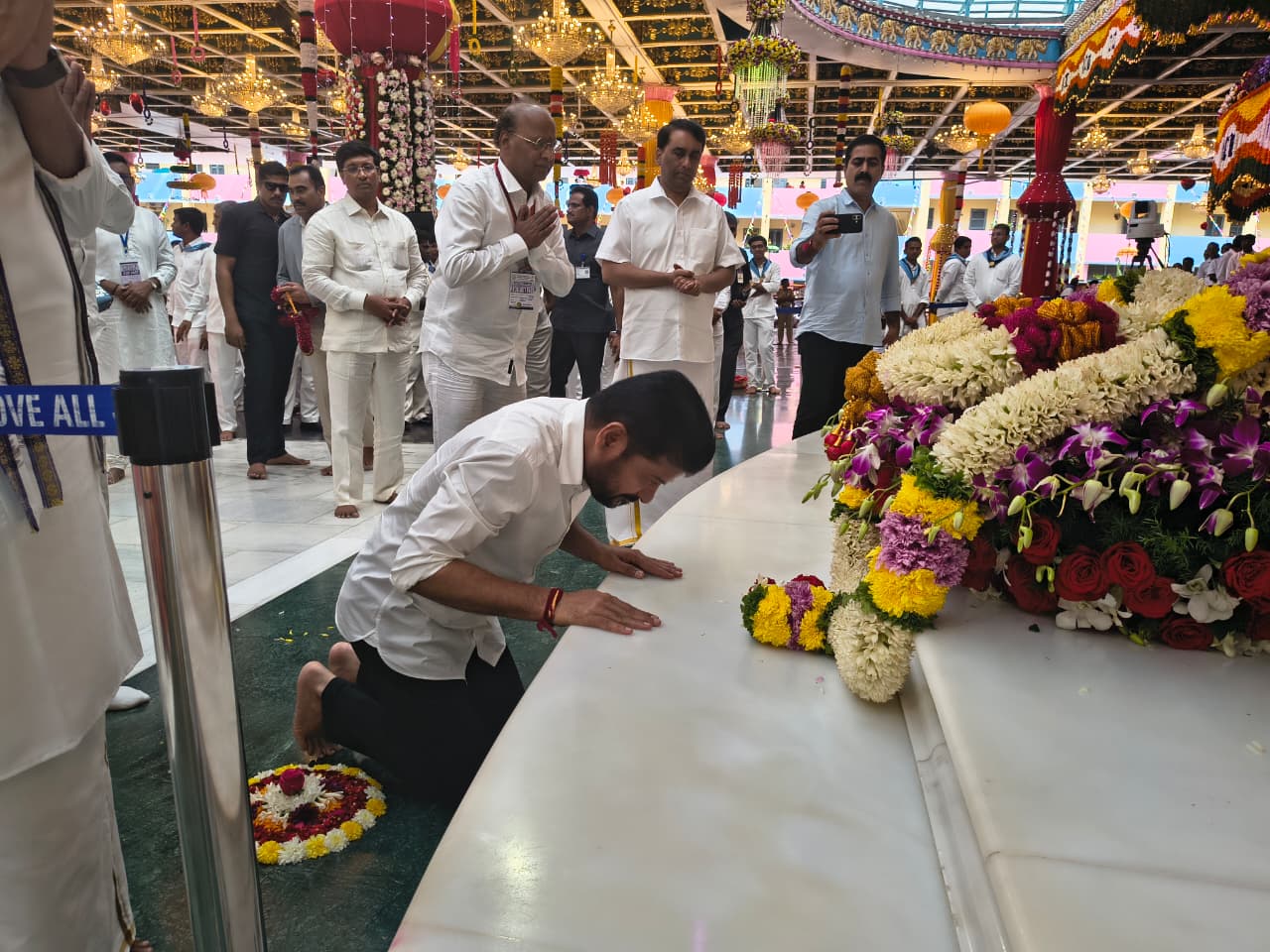 After the programme at the Puttaparthi Hill View Stadium, the Chief Minister visited the Mahasamadhi of Bhagwan Sathya Sai Baba at Sai Kulwant Hall.