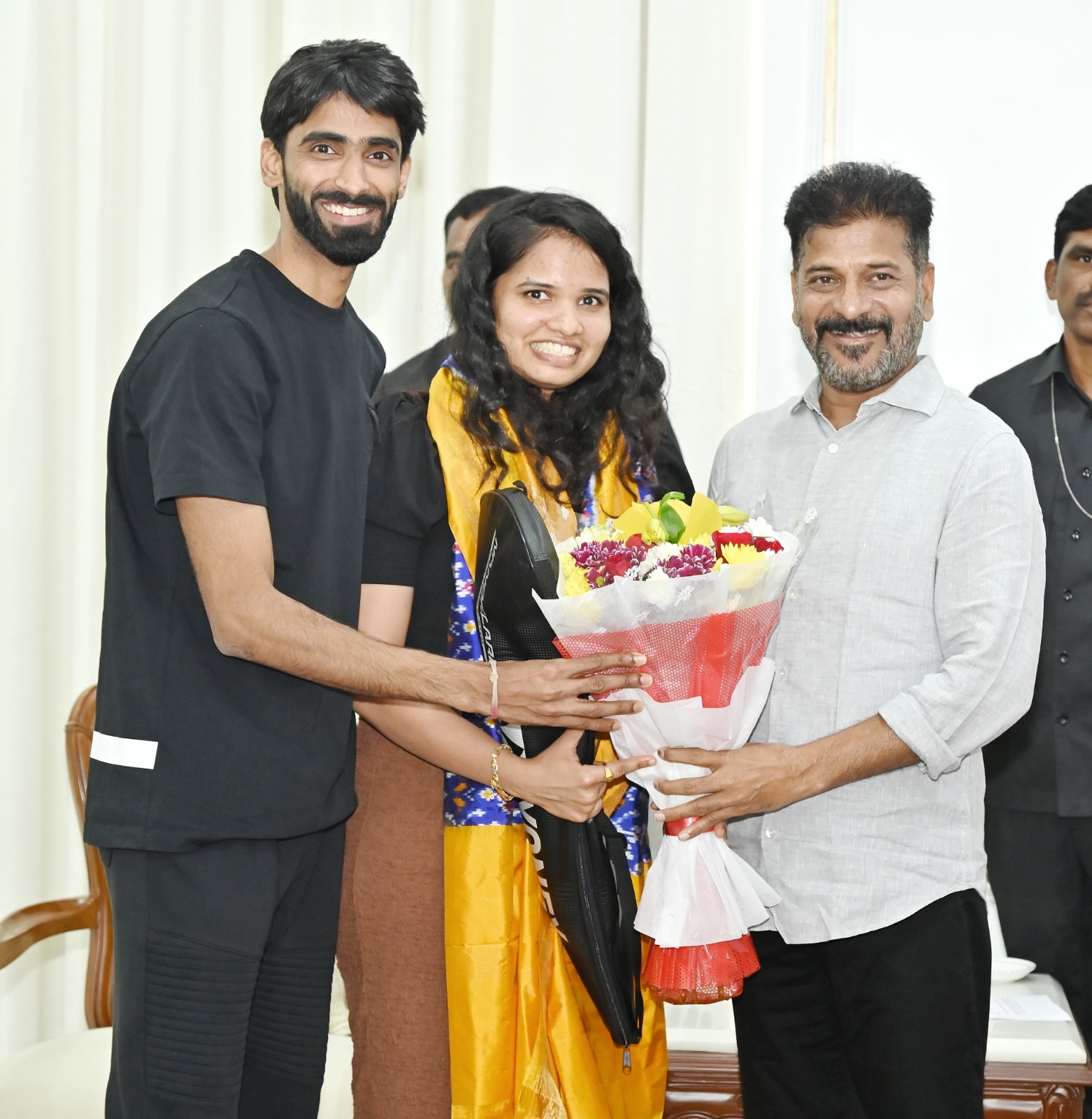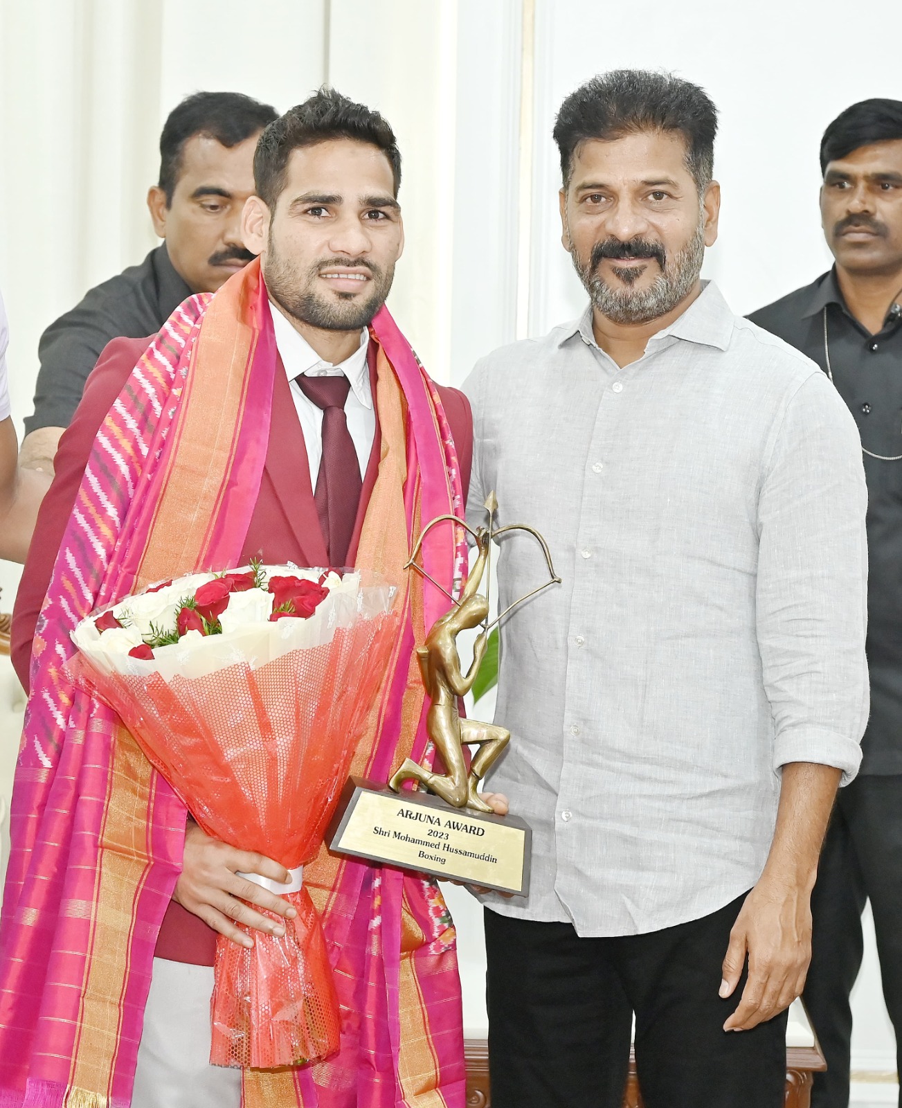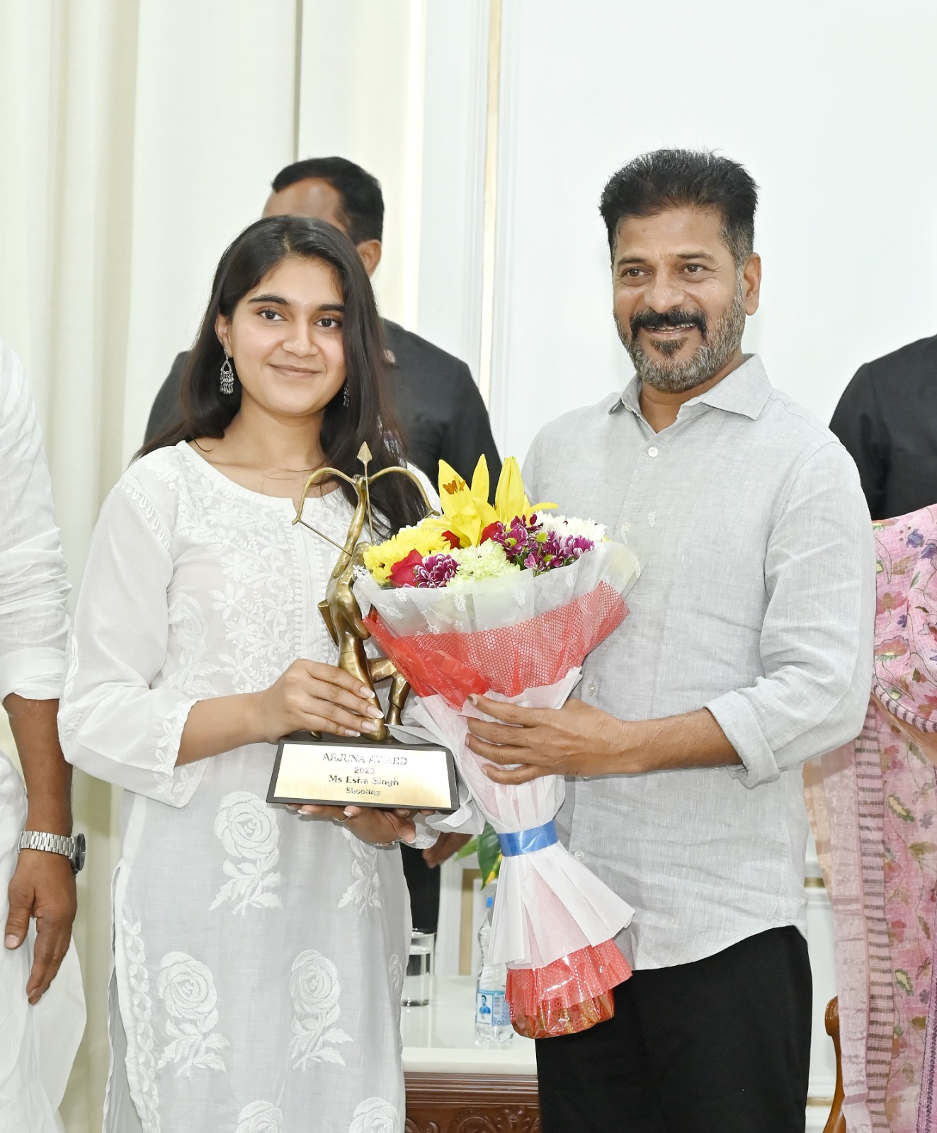 ఈ సందర్భంగా విజేతలందరూ తమ పతకాలను, అవార్డులను సగర్వంగా ముఖ్యమంత్రికి చూపించారు. ముఖ్యమంత్రి గారు అందించిన ప్రోత్సాహానికి కృతజ్ఞతలు తెలిపారు. హుసాముద్దీన్ (బాక్సింగ్ మరియు కామన్వెల్త్ గేమ్స్ కాంస్య పతక విజేత), ఈషా సింగ్ (షూటింగ్, ఆసియా క్రీడలు 2023 బంగారు పతక విజేత), ఆసియా క్రీడలు 2023లో పాల్గొన్న నిఖత్ జరీన్ (బాక్సింగ్లో కాంస్య పతకం), కినాన్ చెనై డారియస్ (షూటింగ్లో బంగారు పతక విజేత), అగసర నందిని (అథ్లెటిక్స్లో కాంస్య పతక విజేత), ఎన్. సిక్కి రెడ్డి (బ్యాడ్మింటన్ పార్టిసిపెంట్) పి. గాయత్రి గోపీచంద్ (బ్యాడ్మింటన్ పార్టిసిపెంట్). పారా అథ్లెట్, పారా గేమ్స్లో గోల్డ్ మెడలిస్ట్ అయిన జీవన్జీ దీప్తి ముఖ్యమంత్రిని కలిశారు.