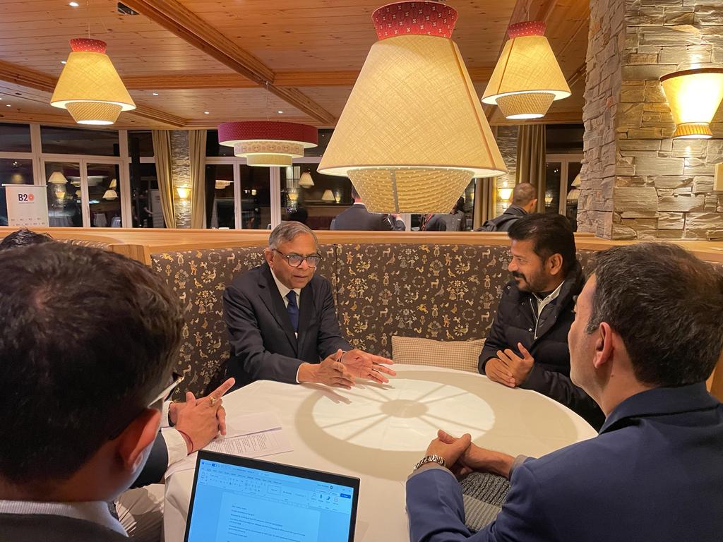 Hon’ble Chief Minister of Telangana, Sri Revanth Reddy, and Sri Natarajan Chandrasekaran, Chairman of Tata Sons, met during the World Economic Forum Annual Meeting 2024 in Davos, Switzerland and discussed Tata group’s ongoing and future business plans for Telangana.