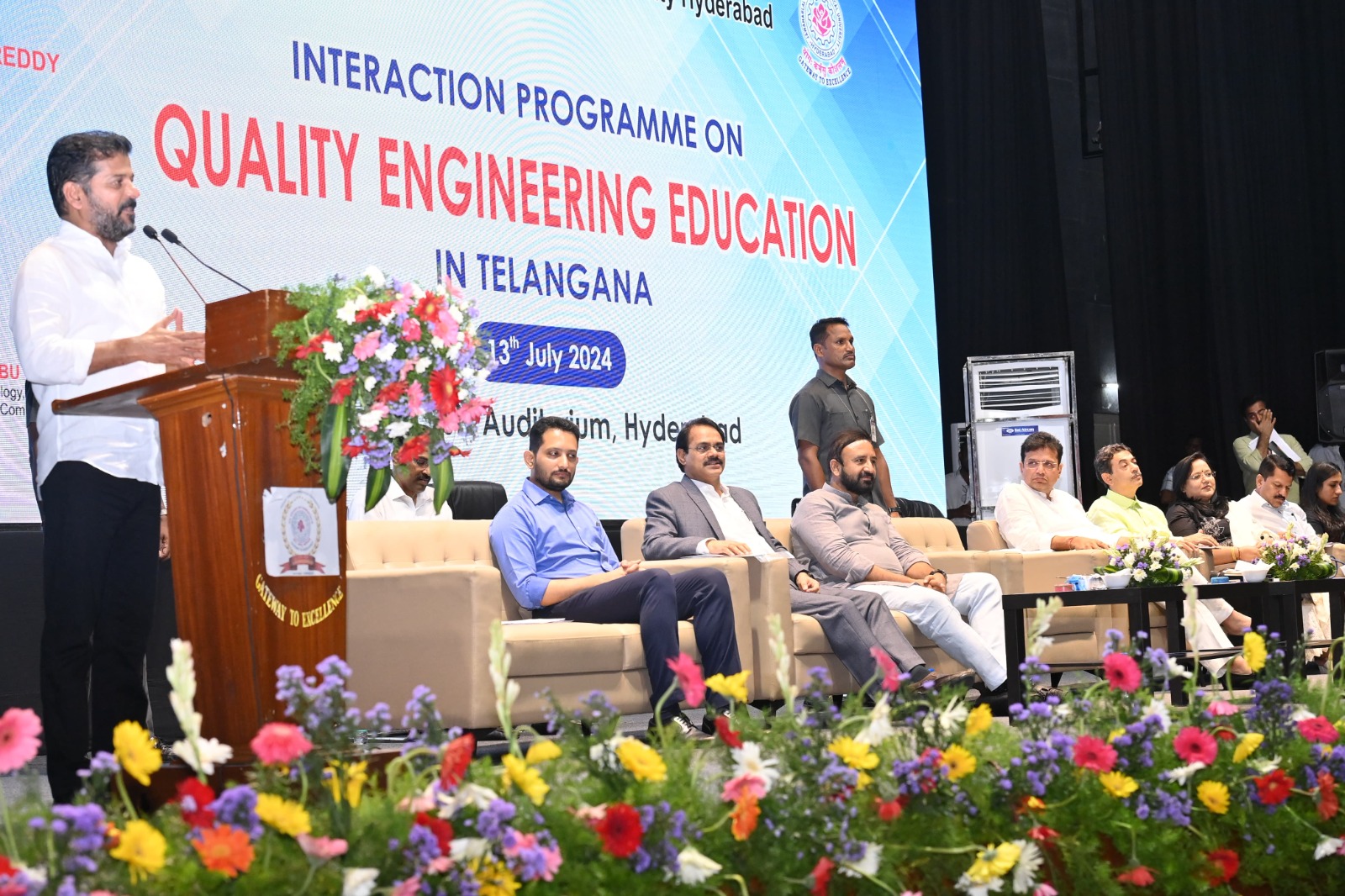 Chief Minister Sri A. Revanth Reddy participated in an interaction programme on Quality Engineering Education in Telangana, organized at JNTU, Hyderabad campus on Saturday.