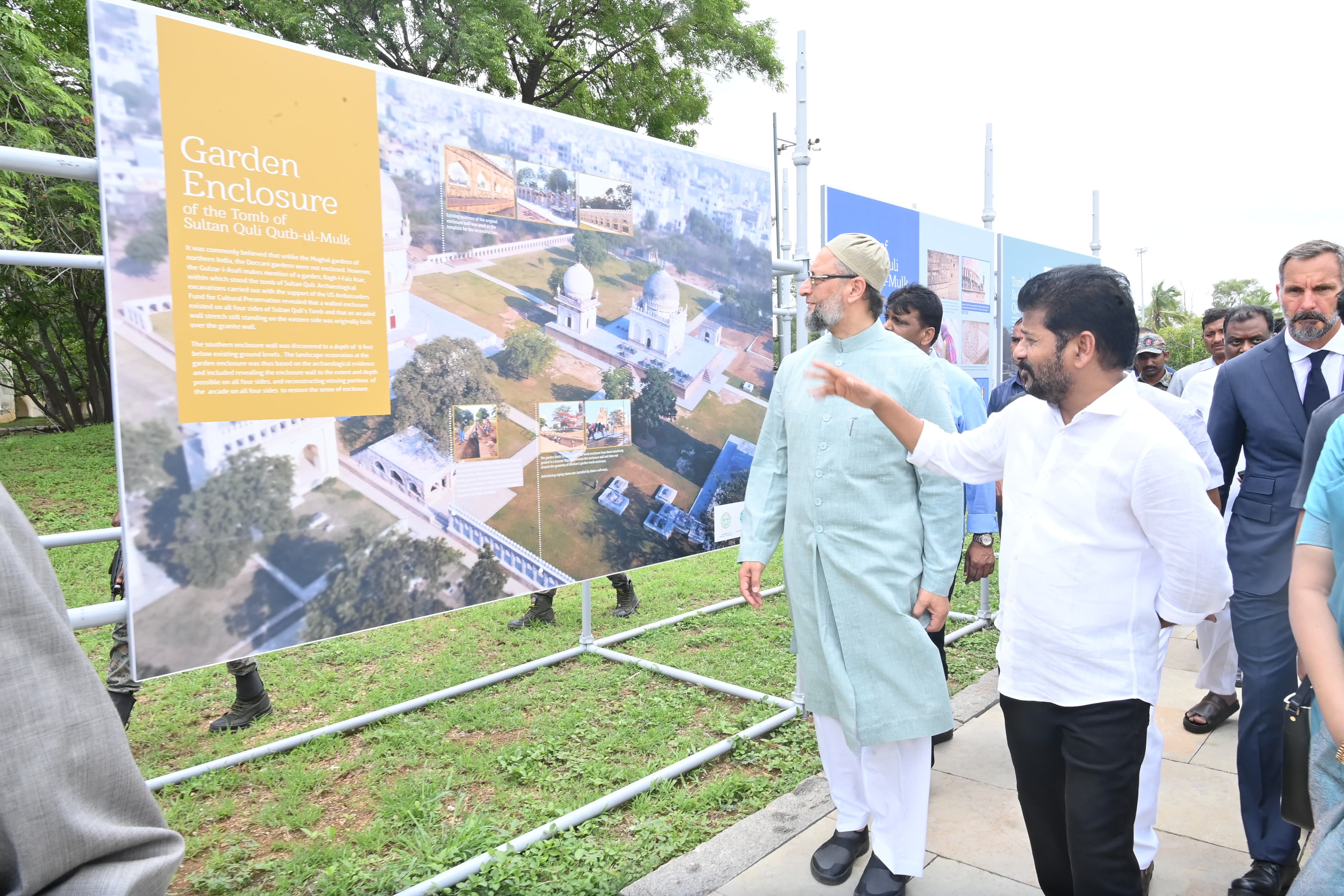కుతుబ్ షాహీ టూంబ్స్ ను సందర్శించిన సీఎం రేవంత్ రెడ్డి, మంత్రి జూపల్లి కృష్ణారావు, హైదరాబాద్ ఎంపీ అసదుద్దీన్ ఓవైసీ, ప్రిన్స్ రహీమ్ ఆగాఖాన్, పర్యాటక శాఖ ఉన్నతాధికారులు. కుతుబ్ షాహీ టూంబ్స్ లో మొక్కను నాటిన సీఎం రేవంత్ రెడ్డి. అగాఖాన్ ట్రస్ట్ ఫర్ కల్చర్ ఆధ్వర్యంలో నిర్వహించిన కార్యక్రమంలో సీఎం పాల్గొన్నారు.
