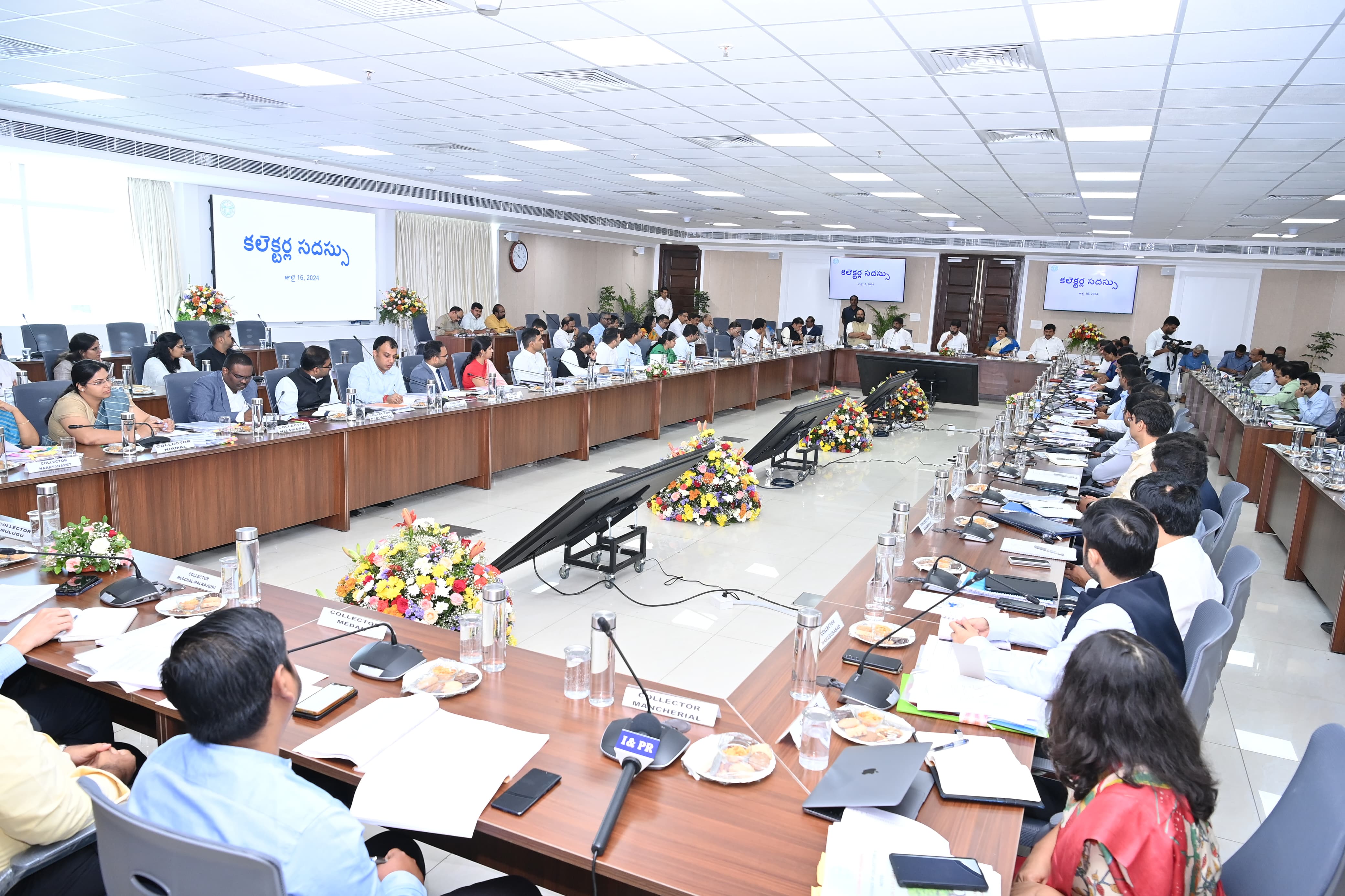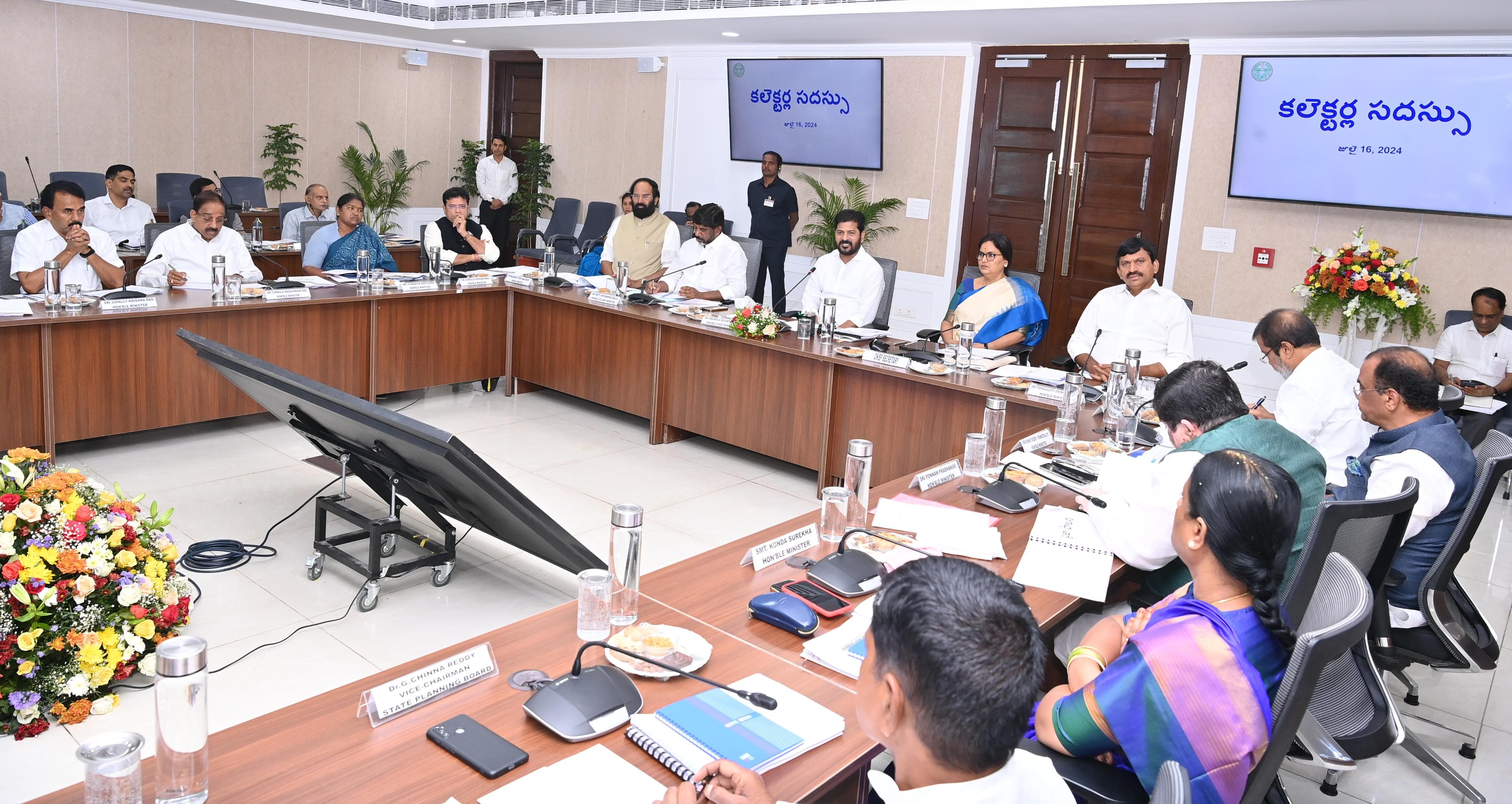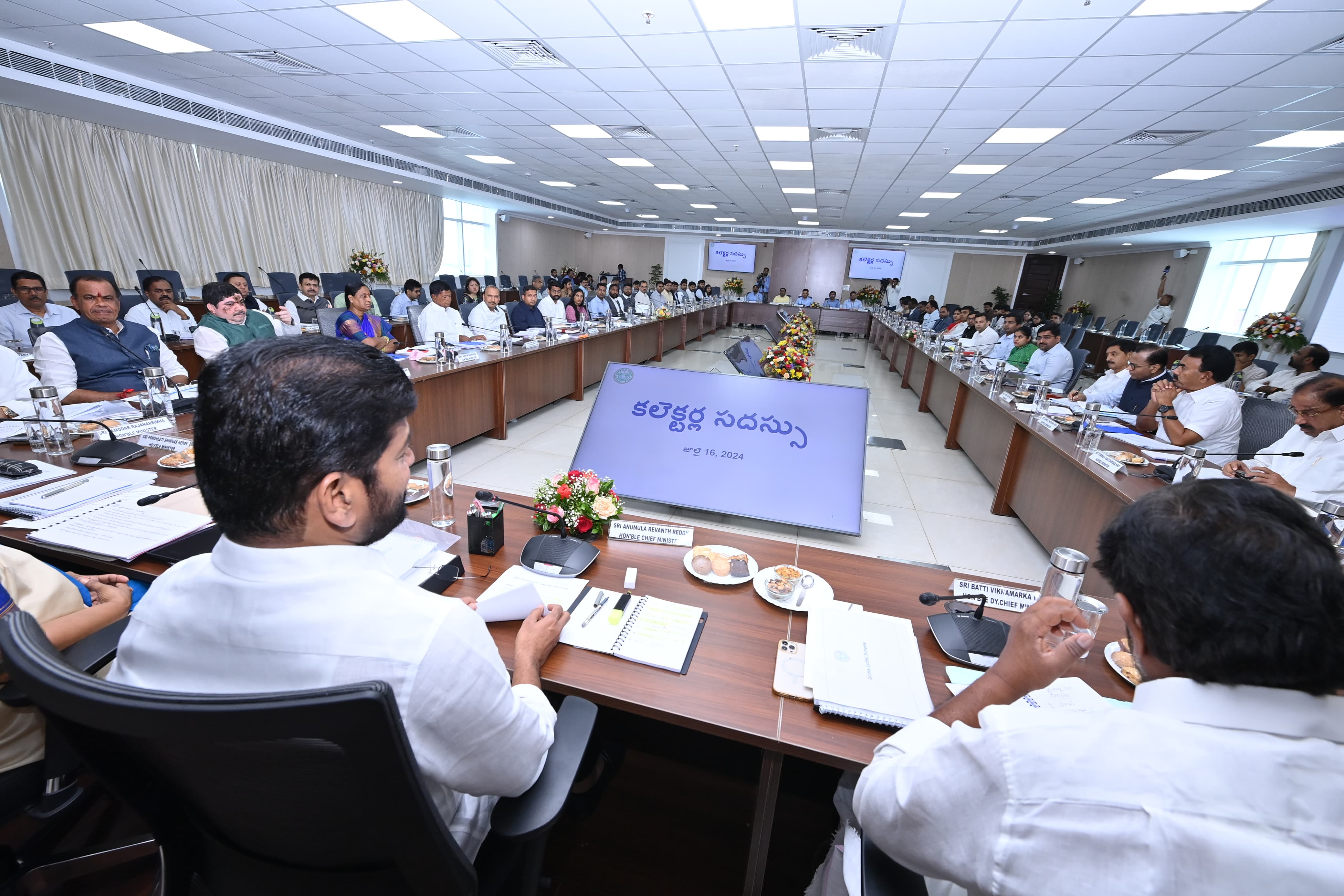 CM Revanth Reddy held Collectors conference at Secretariat on Tuesday. Deputy CM Bhatti Vikramarka, Ministers- N Uttam Kumar Reddy, Ponguleti Srinivasa Reddy, D Sridhar Babu, Damodara Rajanarsimha, Ponnam Prabhakar, Komati Reddy Venkat Reddy, Jupalli Krishna Rao, Tummala Nageswara Rao, Seethakka, Konda Surekha, Vice Chairman of State Planning Board G Chinna Reddy and Chief Minister’s Advisor Vem Narender Reddy participated.