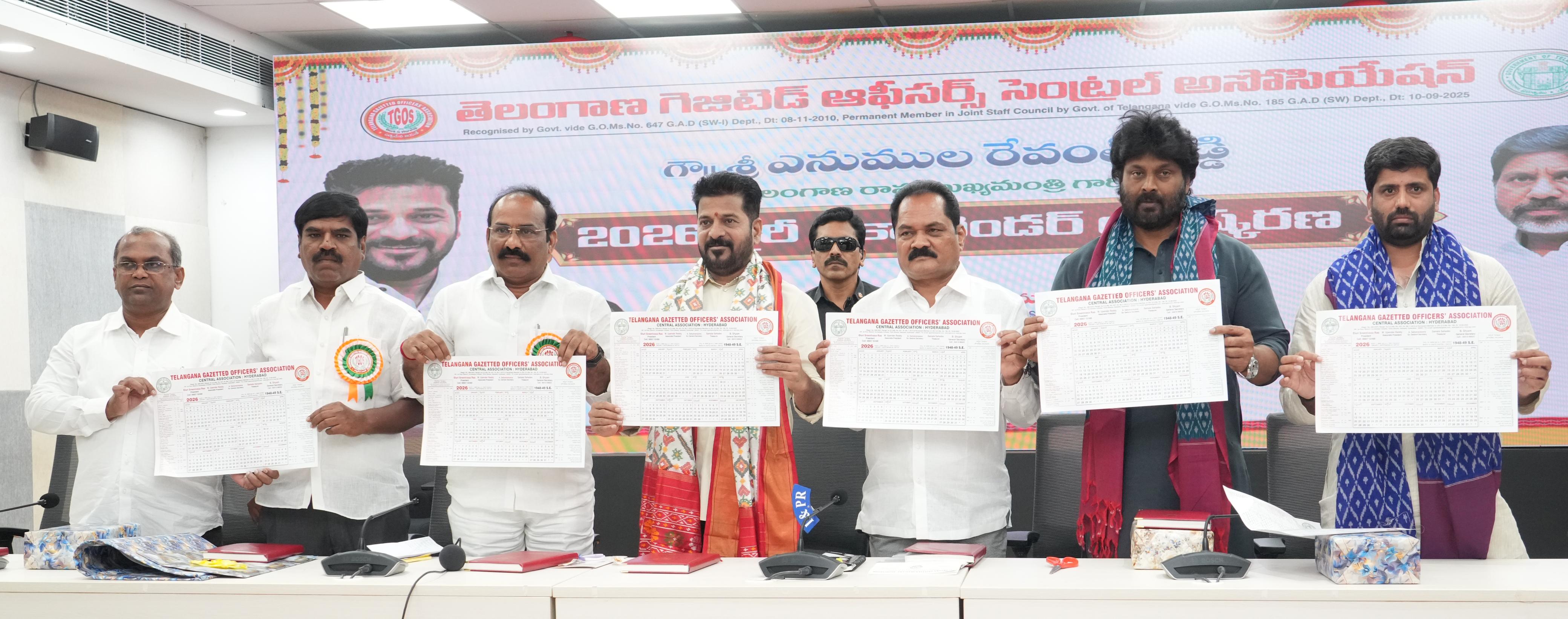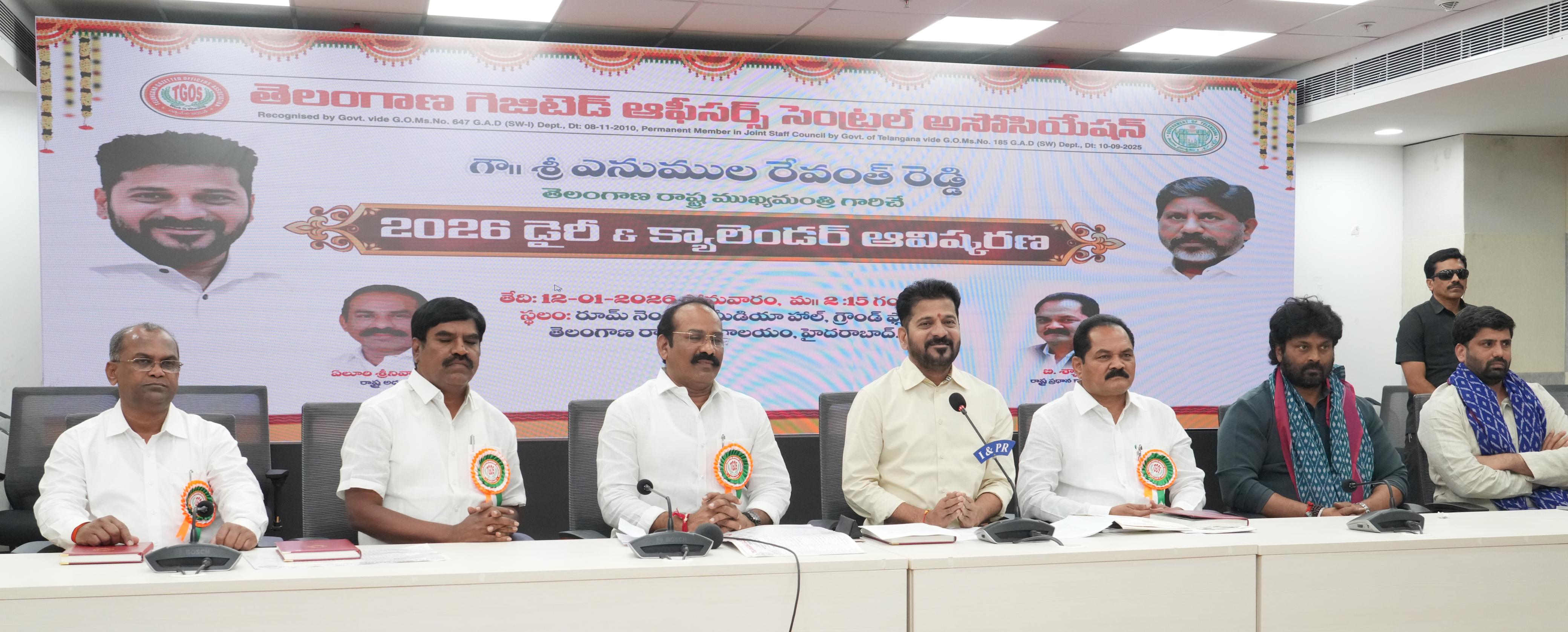 The Chief Minister unveiled the 2026 diary and calendar designed by the Telangana Gazetted Officers Central Association at the Dr. B.R. Ambedkar State Secretariat.
