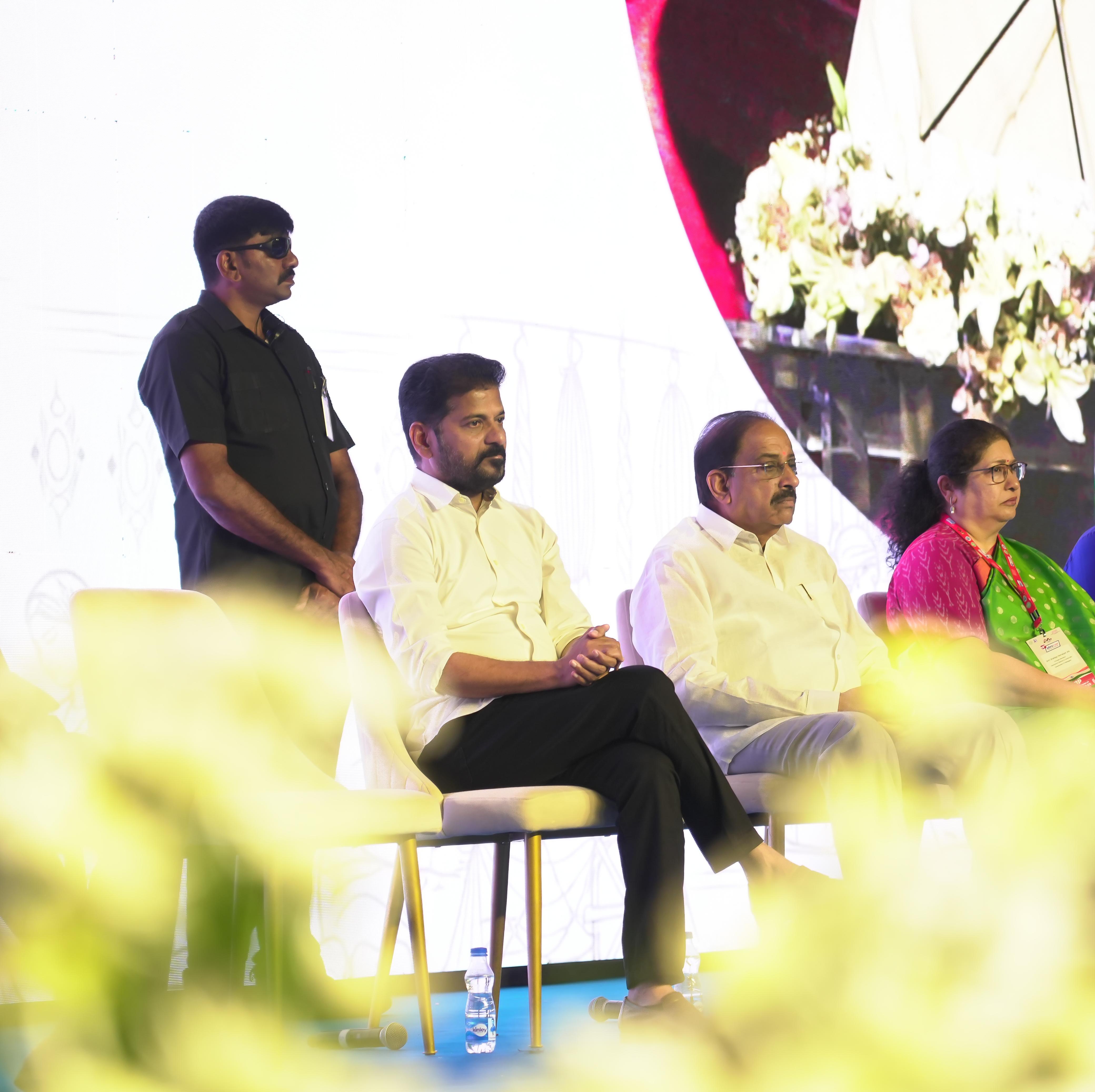 ప్రపంచంలోని ప్రతి దేశం తెలంగాణలో తయారైన దుస్తులను ధరించేలా చేయాలన్నది మా సంకల్పం. తెలంగాణ రైజింగ్ ప్రయాణంలో అందరూ భాగస్వాములు కావాలి..” అని ముఖ్యమంత్రి గారు పెట్టుబడిదారులకు పిలుపునిచ్చారు.