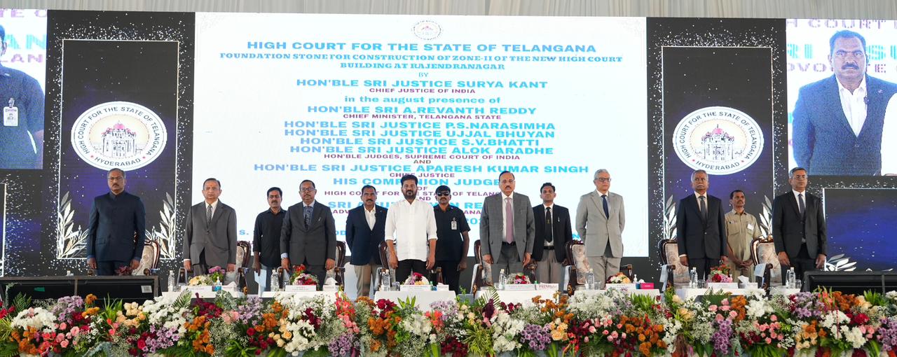 The Chief Minister participated in the foundation stone laying ceremony for the Telangana High Court Zone-II complex at Rajendranagar in Ranga Reddy district, where Hon’ble Supreme Court Judge Justice Surya Kant laid the foundation stone.