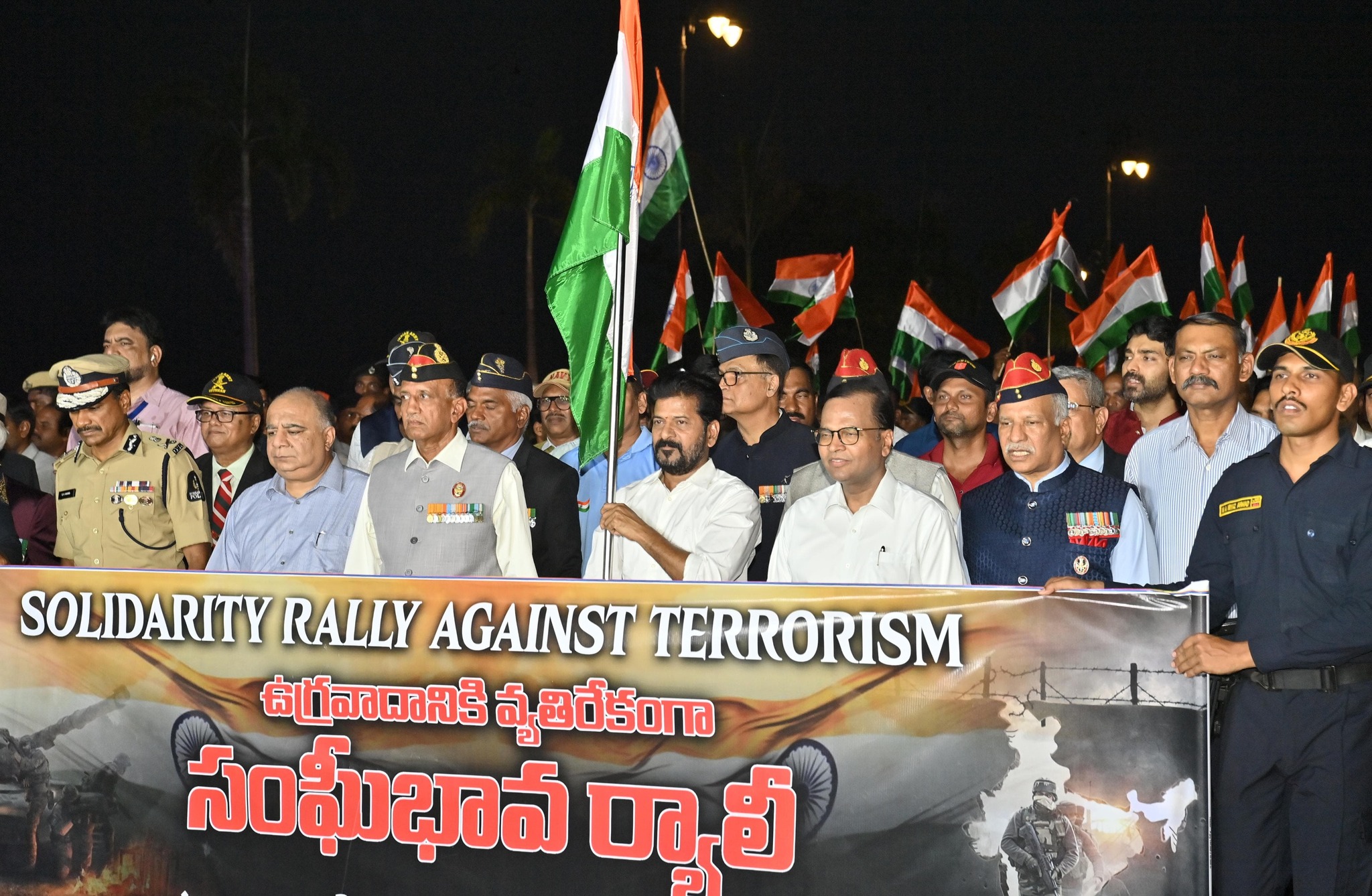 CM Sri A. Revanth Reddy participated in National Solidarity Rally against Terrorism, from the Secretariat to the Indira Gandhi Statue in Hyderabad.