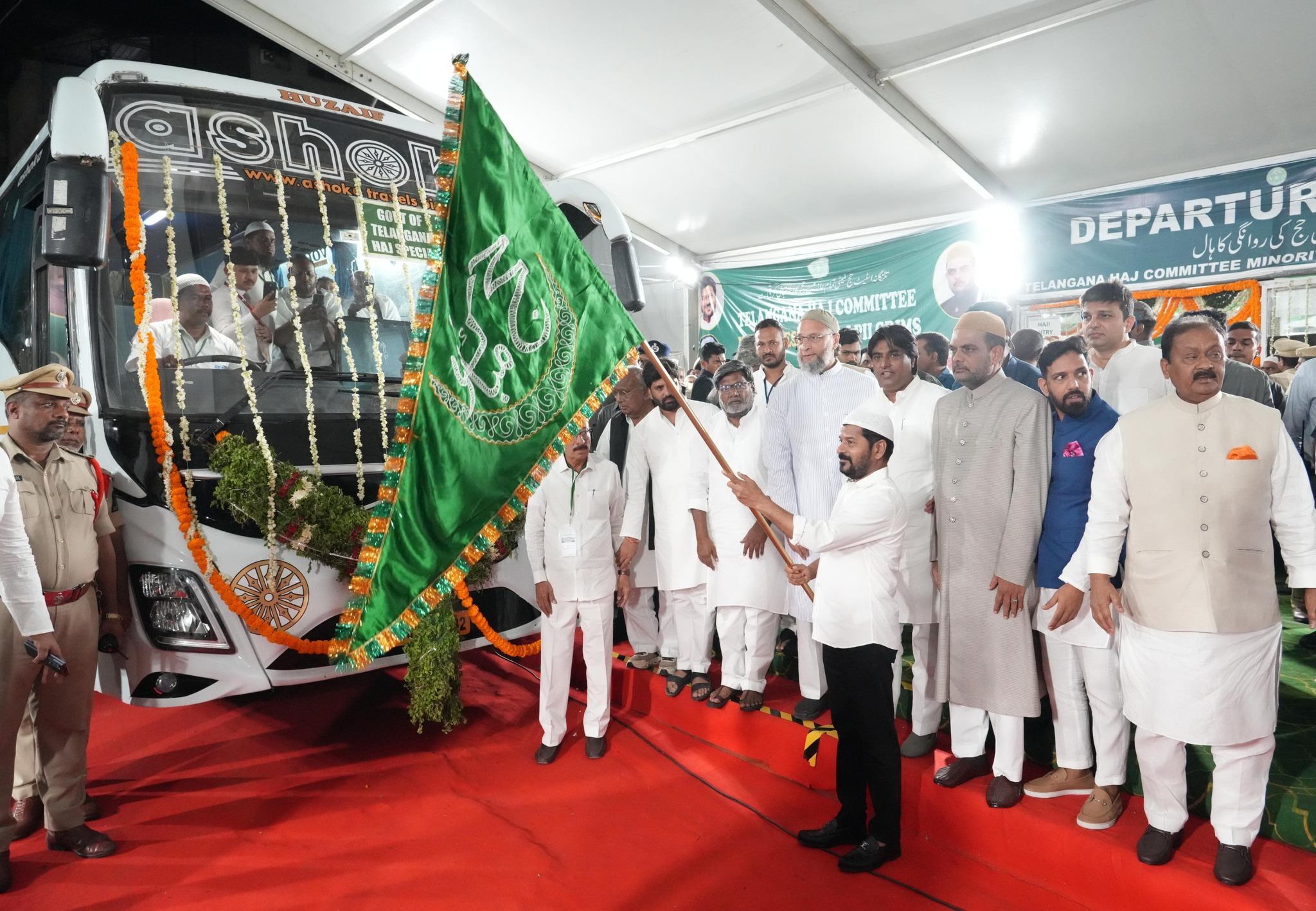 CM Sri. A. Revanth Reddy Flags Off Haj Pilgrims’ Buses at Haj House, Nampally, Hyderabad.