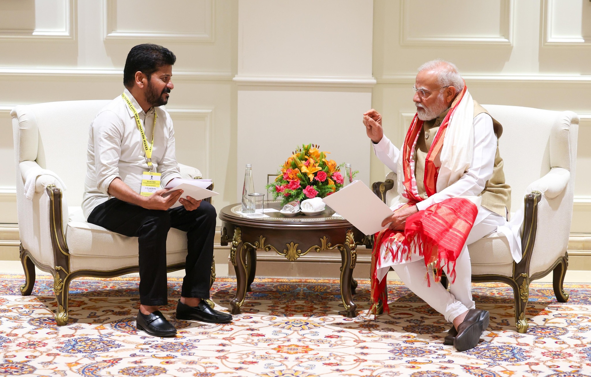 తెలంగాణ ముఖ్యమంత్రి శ్రీ రేవంత్ రెడ్డి గారు ఢిల్లీలో ప్రధానమంత్రి శ్రీ నరేంద్ర మోదీ గారిని మర్యాదపూర్వకంగా కలిసి, రాష్ట్ర అభివృద్ధికి సంబంధించిన ప్రధాన అంశాలను చర్చించారు. ఈ సందర్భంగా పలు ప్రాజెక్టులను ప్రస్తావించిన ముఖ్యమంత్రి గారు వాటి నిర్మాణాలకు కేంద్ర ప్రభుత్వం సహకరించాలని ప్రధానమంత్రి గారిని కోరారు.