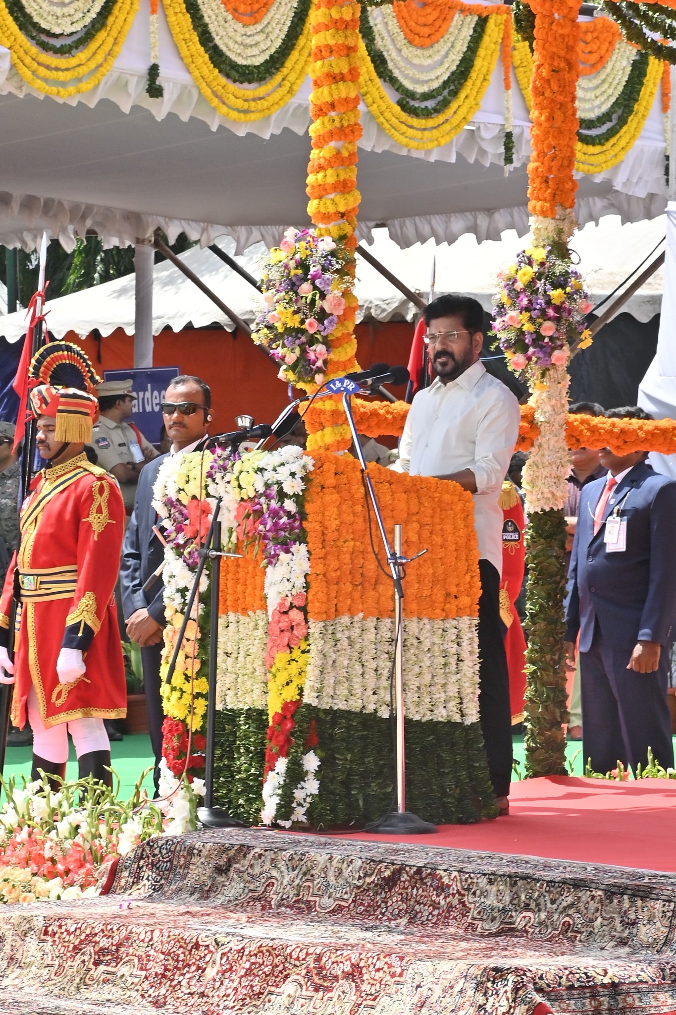 తెలంగాణ రాష్ట్ర ఆవిర్భావ దినోత్సవం సందర్భంగా సికింద్రాబాద్ పరేడ్ గ్రౌండ్స్‌లో జాతీయ జెండాను ఆవిష్కరించి సాయుధ దళాల గౌరవ వందనాన్ని స్వీకరించారు. ఈ కార్యక్రమానికి జపాన్ కితాక్యిషూ మేయర్ కజుహిసా టక్యూచీ రాష్ట్ర అతిథిగా పాల్గొన్న ఈ కార్యక్రమంలో ముఖ్యమంత్రి గారు రాష్ట్ర ప్రజలను ఉద్దేశించి ప్రసంగించారు.