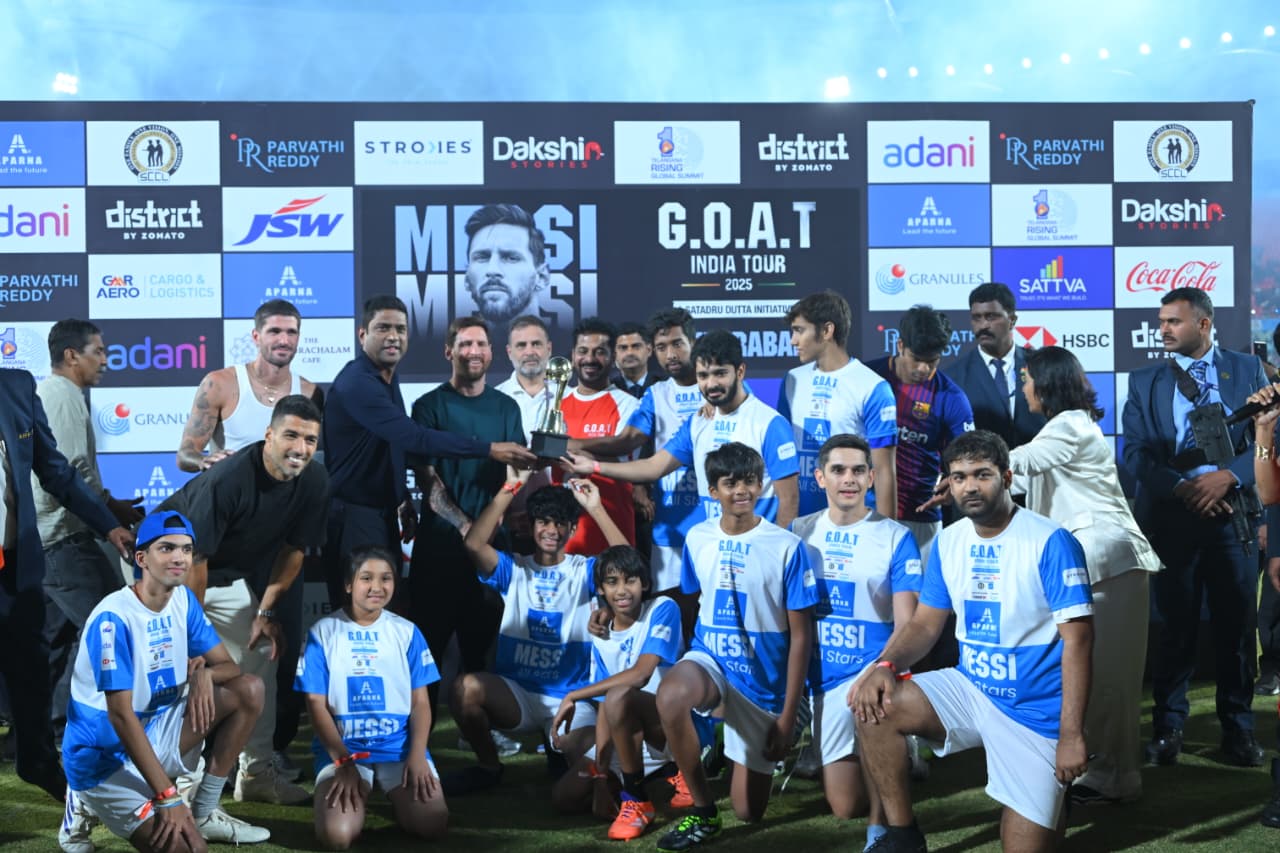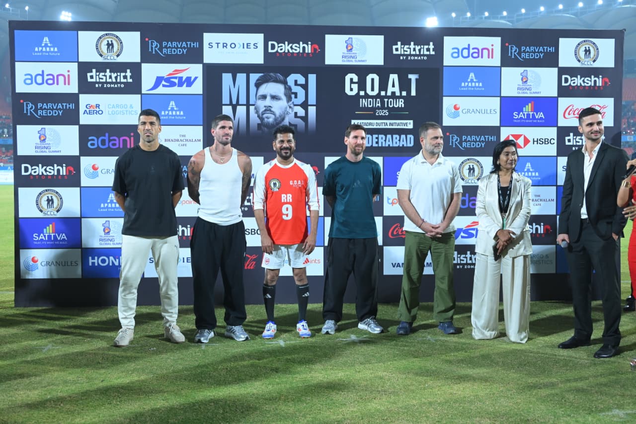 Messi commented that his visit to India and the affection shown by the fans brought him immense joy. Addressing Messi and his team, Chief Minister Sri A. Revanth Reddy said, “Welcome to Telangana, Telangana is rising… Come join the rise…” The event concluded with Messi and his team greeting the sports fans.