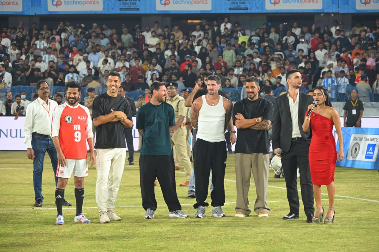 The Argentine captain, visiting India after 14 years, impressed the sports fans, and his Hyderabad visit was a resounding success. When Messi, along with footballers Rodrigo De Paul, Luis Suárez, and Chief Minister Revanth Reddy, entered the field, the stadium erupted in chants of “Messi… Messi…”