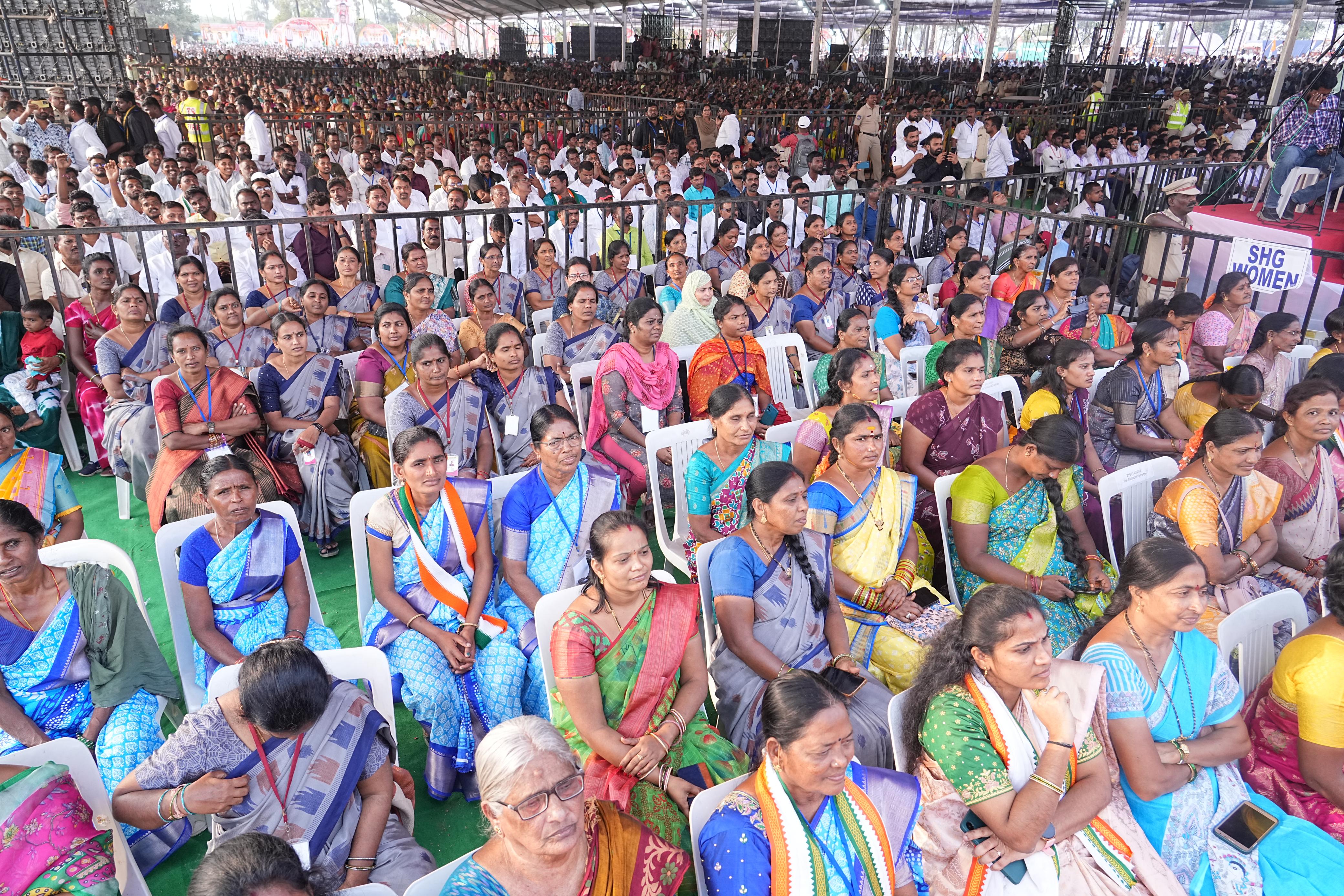 రాష్ట్రంలో కోటి మంది మహిళలను కోటీశ్వరులను చేయాలన్న సంకల్పంతో మహిళాభ్యున్నతి కోసం అనేక కార్యక్రమాలు చేపట్టాం. ఉచిత బస్సు సౌకర్యం, సంఘాలకు వడ్డీ లేని రుణాలు, సోలార్ విద్యుత్ ప్లాంట్లు, పెట్రోల్ బంకులు, ఉత్పత్తుల విక్రయానికి శిల్పారామంలో ఇందిరా మహిళా శక్తి బజార్, బస్సులకు యజమానులుగా.. ఇలా అనేక పథకాలు అమలు చేస్తున్నాం.