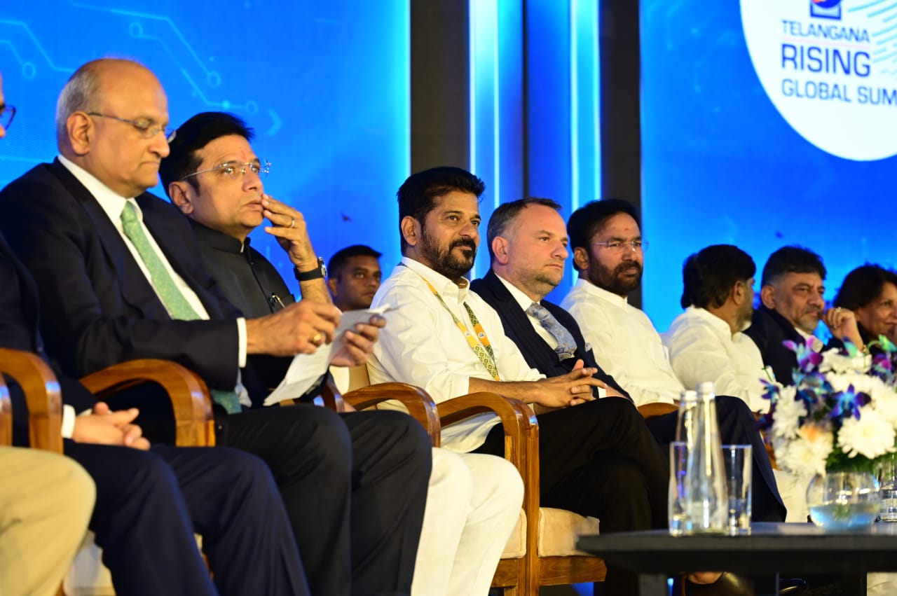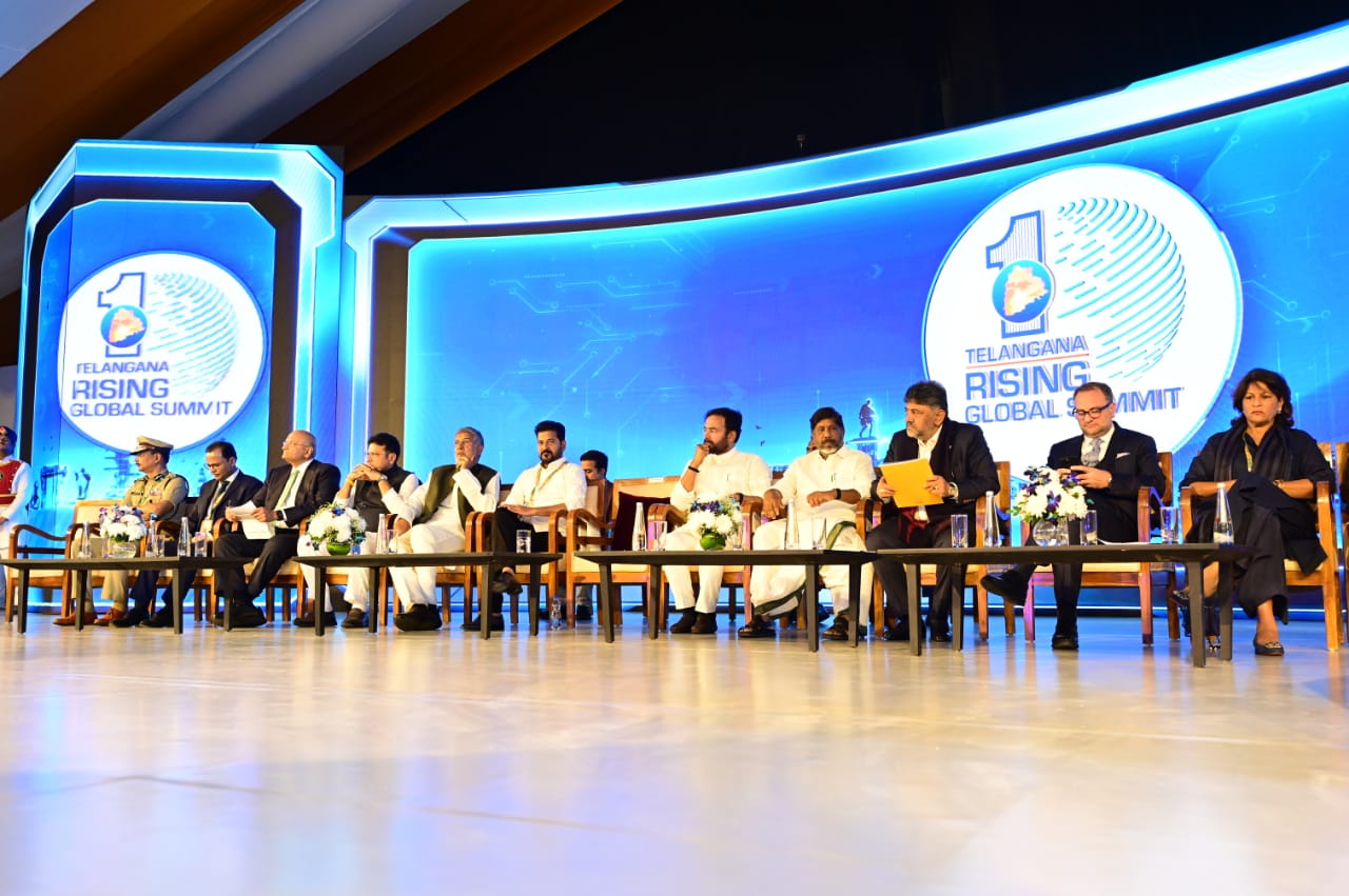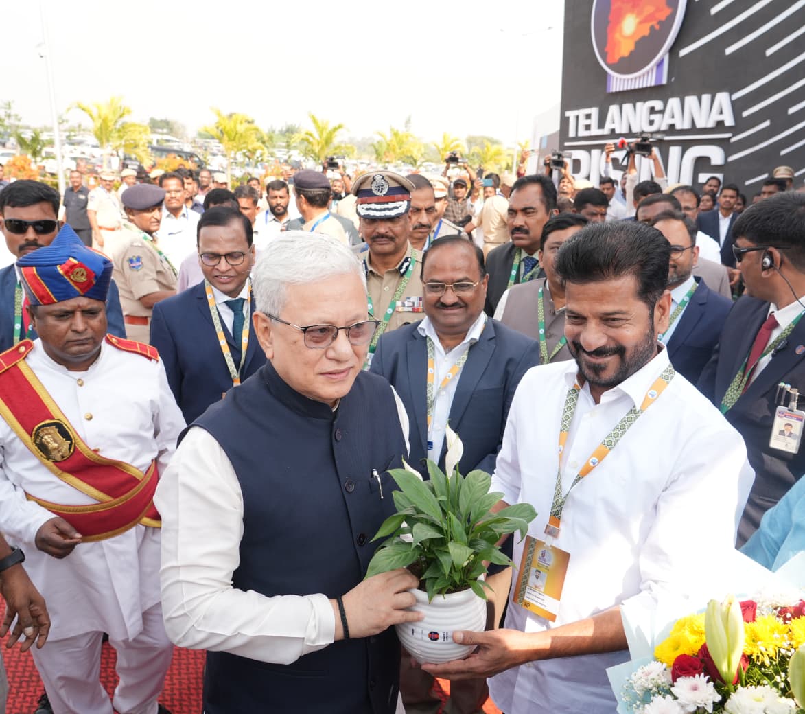 భారత్ ఫ్యూచర్ సిటీ (Bharat Future City) (మీర్ఖాన్పేట్) లో అత్యంత అద్భుతంగా ఏర్పాటు చేసిన తెలంగాణ రైజింగ్ గ్లోబల్ సమ్మిట్ 2025 (Telangana Rising Global Summit 2025) తొలిరోజు సదస్సు ప్రారంభోత్సవంలో రాష్ట్ర గవర్నర్ శ్రీ జిష్ణు దేవ్ వర్మ గారు, ఇతర ప్రముఖులతో కలిసి ముఖ్యమంత్రి గారు పాల్గొన్నారు. దేశ, విదేశాల నుంచి అతిరథ మహారథులు హాజరైన ఈ సదస్సులో ముఖ్యమంత్రి గారు మాట్లాడుతూ, తెలంగాణ భవిష్యత్తు కోసం నిర్దేశిత లక్ష్యాలను సవివరంగా ఆవిష్కరించారు.